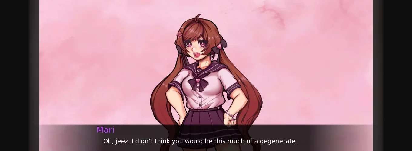 In Love Me Not you’re a sex-deprived high school student who is followed around by his virtual waifu trained to help him talk to real women. You’ll work on your studying skills, make new friends, and form relationships with stunning women. Advance through the stages of dating to view uncensored lewd scenes. All images and characters are drawn by hand to maximize on quality. With ~2000 lines of dialogue, the game currently lasts around 20-30 minutes. All romanceable characters are 18 years or older.