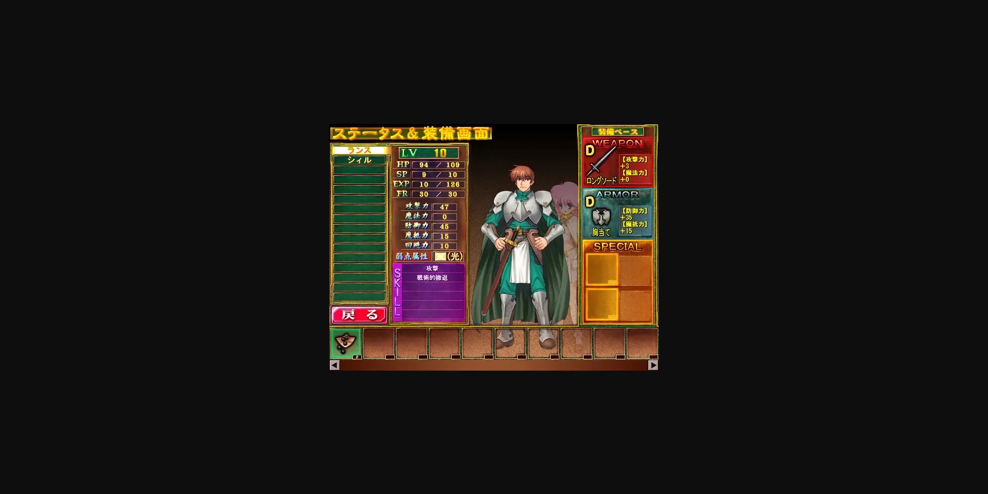 Rance is usually seen with his slave magician Sill in tow. However, in this realm of magic, the tables are turned. As a non-magician, Rance suffers from discrimination, while Sill enjoys a VIP status.