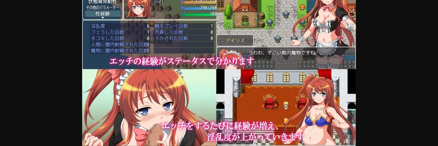 RPG, Fantasy, Female Heroine, Monsters, Tentacles, Big Tits, Creampie, Warrior, Knight, Maid, Prostitution, Blowjob, Pregnant