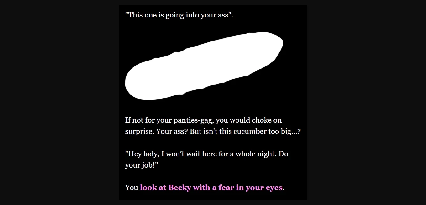 Female Protagonist, Multiple Endings, Text-Based, Anal Sex, BDSM, Corruption, Exhibitionism, Female Domination, Group Sex, Humiliation, Lesbian, Male Domination, Masturbation, Multiple Penetration, Oral Sex, Sex Toys, Slave, Spanking, Vaginal Sex