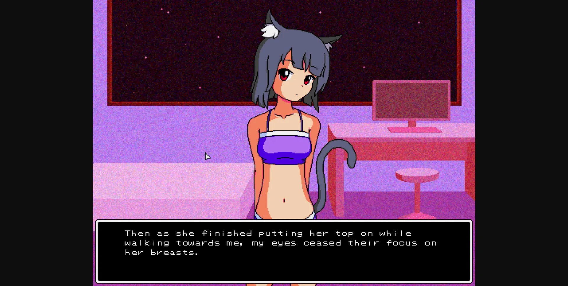 Waking up in a spaceship as an amnesiac, your only hope of learning about anything regarding those circumstances is through your interaction with the ship’s only other occupant, an awkward and beautiful extraterrestrial catgirl named Kiyoko. Many of those interactions will occur between and during the various tasks, hearty meals, and sexual activities you’ll partake in within the confines of a luxuriously futuristic spaceship with her.