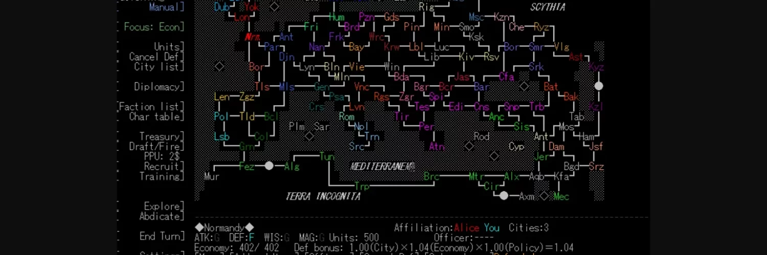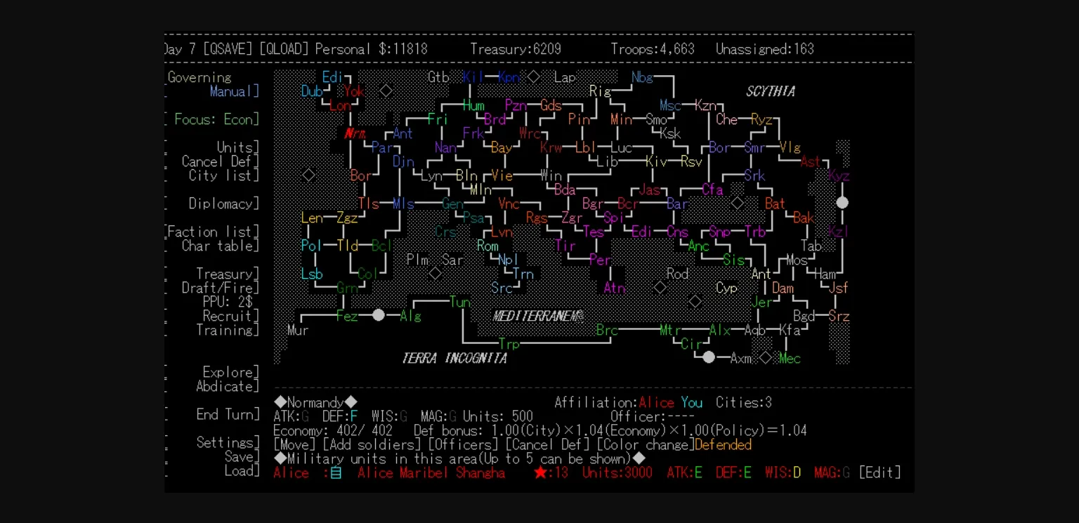 A strategy war game like Sengoku Rance. The player can go on dates and break captives between war turns. Has the best sex system, the most complete translation, and lots of random events.