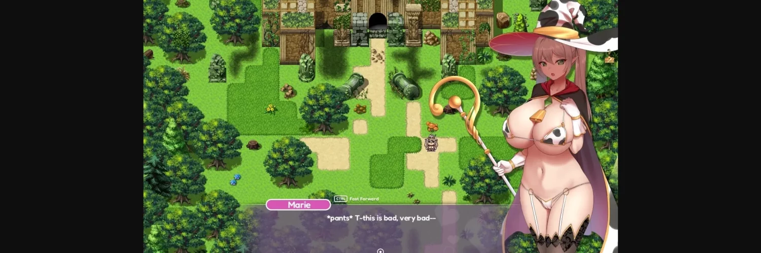 In this game you will play as Marie, a mage with a cow-printed bikini who got blessed by the last remaining god, Lavia, to defeat a fallen god named Demolesta that responsible for the lost of more than 50% world populations and leaving only 15% of them are females. During her adventure, she will meet a party member that willing to help her in her adventure defeating the Demolesta and restoring human populations by getting pregnant. The blessing given by Lavia not only make her stronger but also made her easier to get pregnant and give birth faster than normal human.