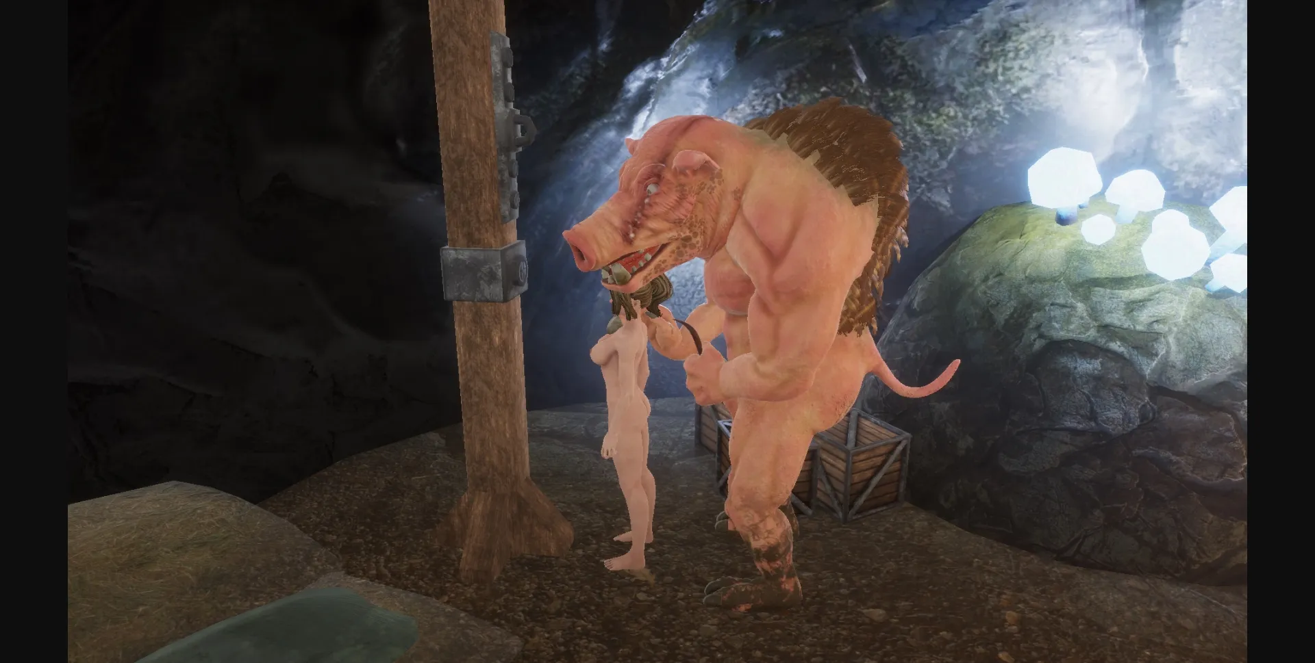 You play as one of the female slaves who were captured by monsters during their raid on your village.
