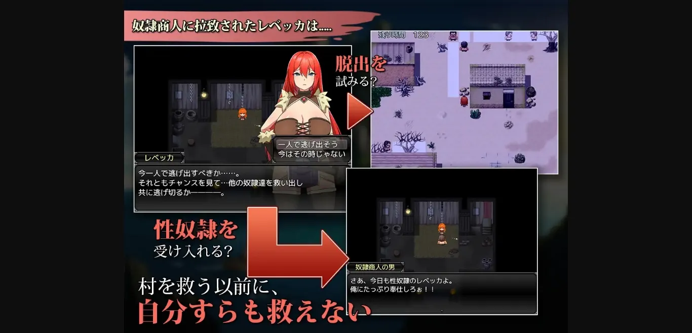 One day, a group of thieves attacked Rebecca’s village. Despite her valiant resistance, she suffered a major defeat, and most of the villagers were abducted. Takezo, the one she secretly admired, was also taken captive. Determined to defeat the thieves and rescue the villagers, Rebecca set out on a journey.