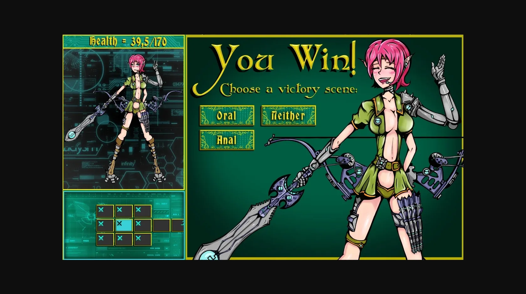 • win and lose windows with scene selections (18+!)