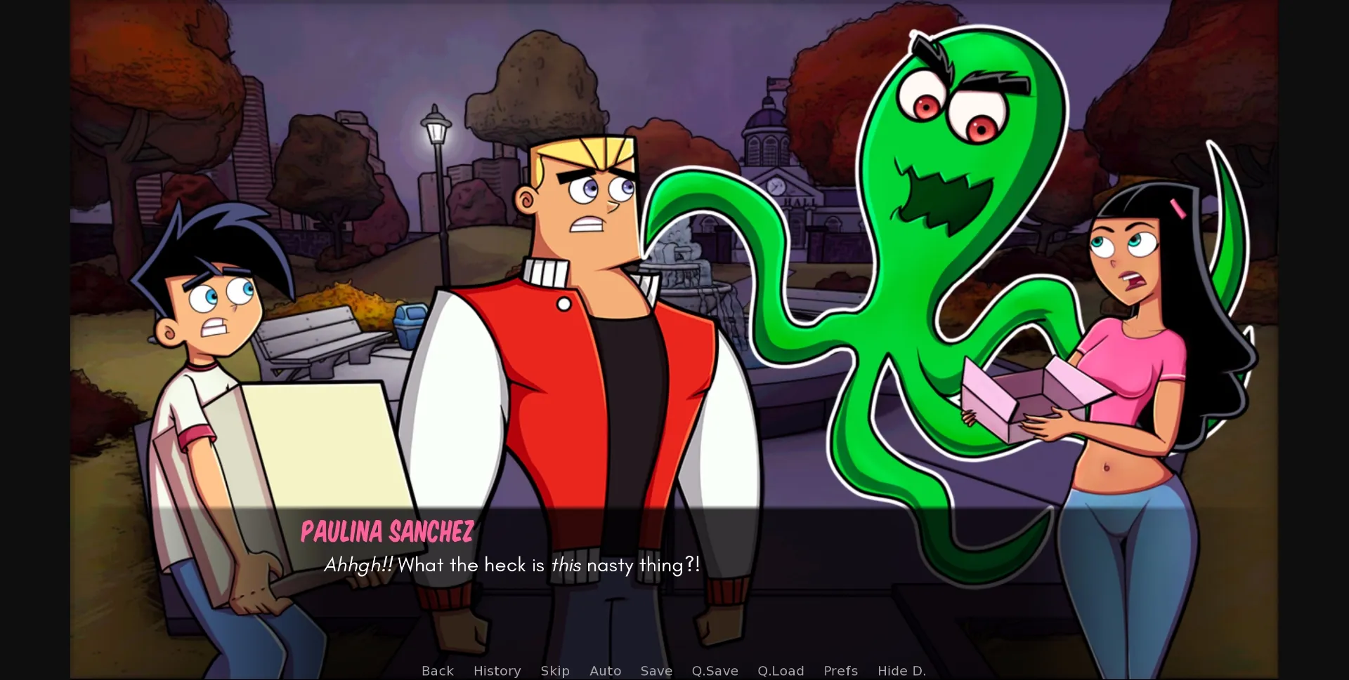 Amity Park is a Dating Sim/Visual Novel game based on the notable Nickelodeon television show, Danny Phantom. The game is a bit of a retelling of the show, most notably with the introduction of explicit adult themes and suggestive content. You play as Danny Fenton, a boy who has accidentally been gifted amazing ghost powers due to his father’s incredible ghost dimensional gateway. He must now use his powers to defend his town from other rampant ghosts, save the girl next door, and still turn in his homework on time. With plenty of ghosts to meet, with just as many cute girls to explore, Amity Park invites you to Go Ghost. Amity Park is made in Ren’Py, and uses 2D character portraits and 3D background models, all made by hand.