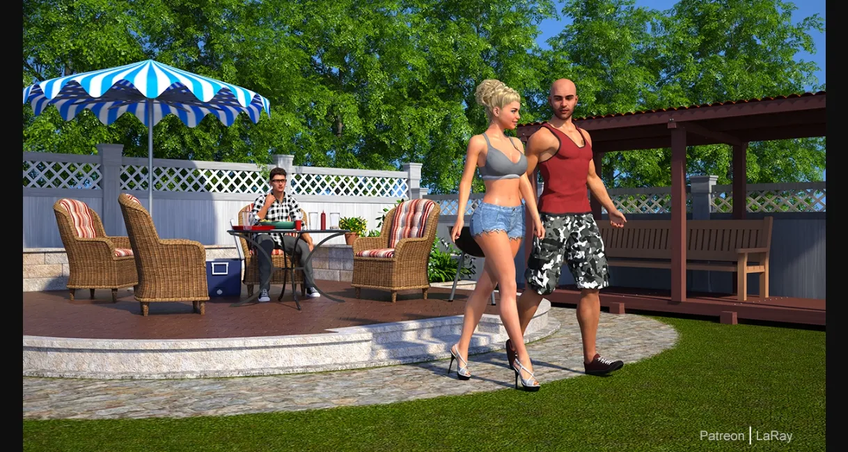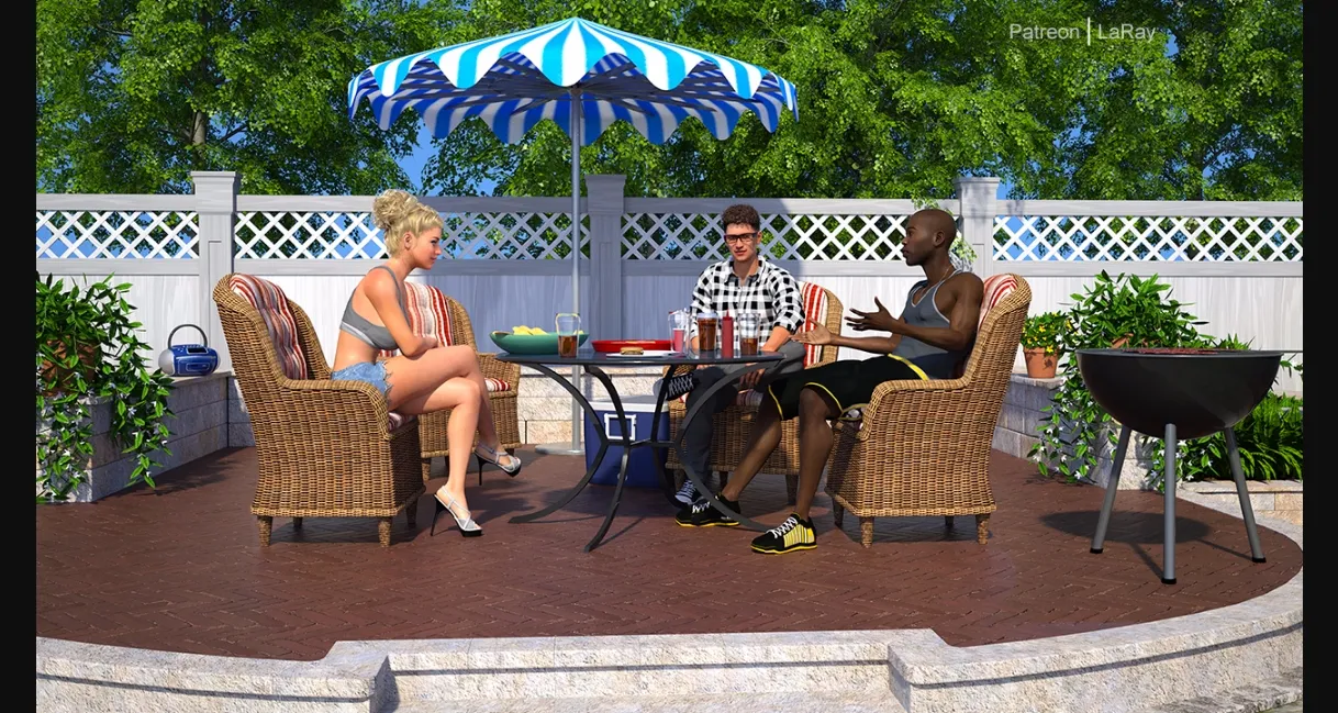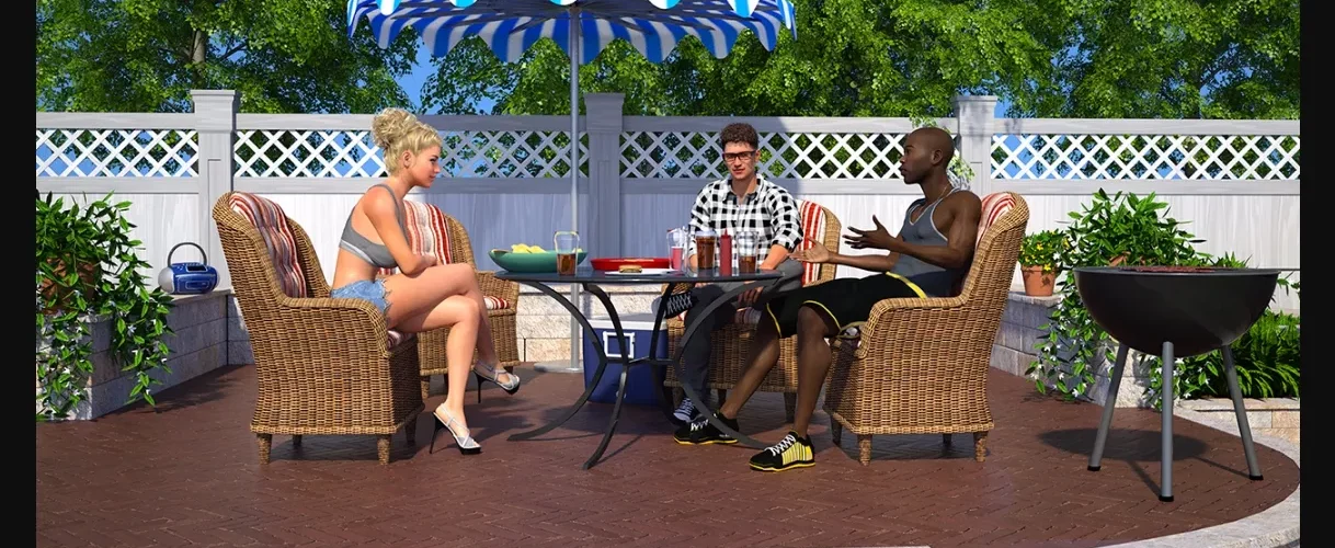 In this new game you enter the life of Jessica White, a cute open-minded blond who loves having fun and giving back. In spite of having a boyfriend, Jessica is very flirty and loves getting men’s attention. In the first Chapter – "The BBQ party" – Michael gets acquainted with their neighbor and invites him to the BBQ party in Jessica and Michael’s backyard. You can play as the neighbor – Kevin (the white guy) or Tyrone (the black guy). There will be an option to play as Jessica in later versions of the game.