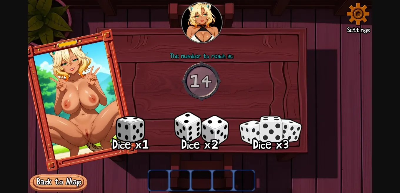 Three sexy girls are very interested in meeting the new guest who just arrived in the continent, but they will only consider you worthy if you can defeat them in a simple dice game. How do you play? Roll one, two, or three dice to reach the number indicated in the center of the screen. Be careful not to exceed that number, or you’ll lose! Win 3 out of 5 games to win the round. Win 3 rounds, and they will give you their grand prize.