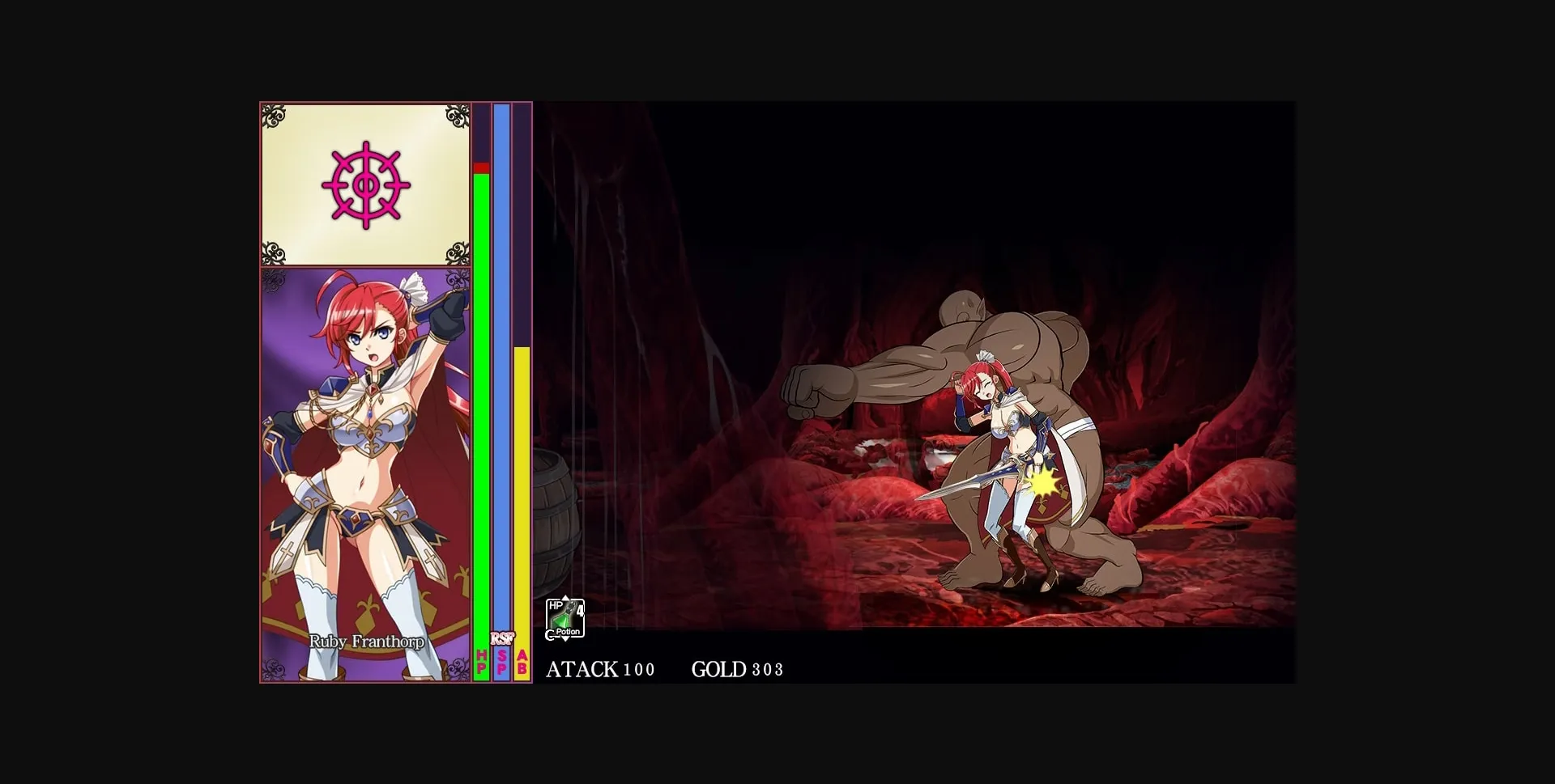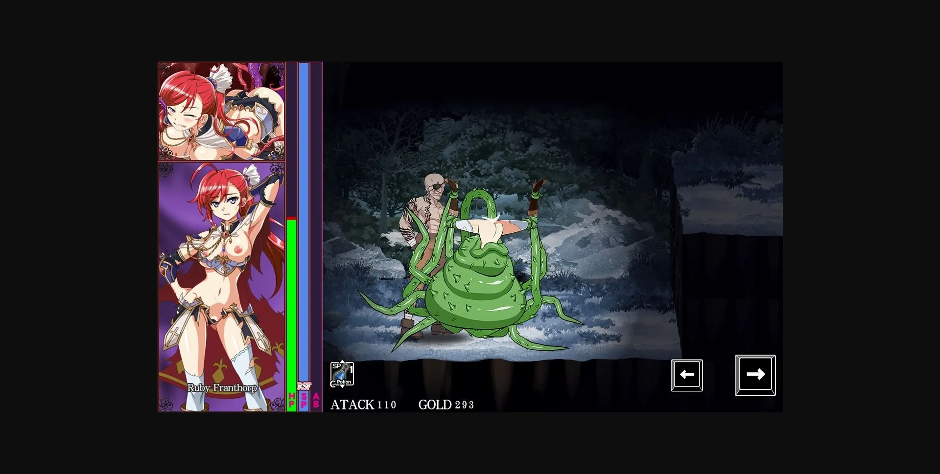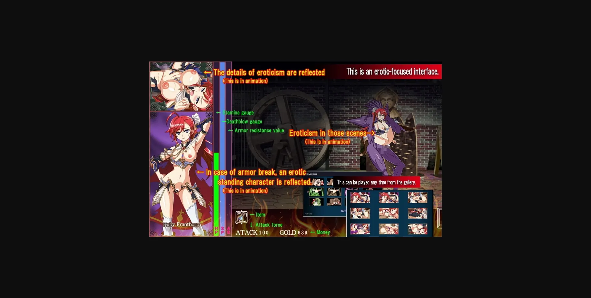If the female warrior is defeated, a major erotic scene shall be displayed as an event scene.