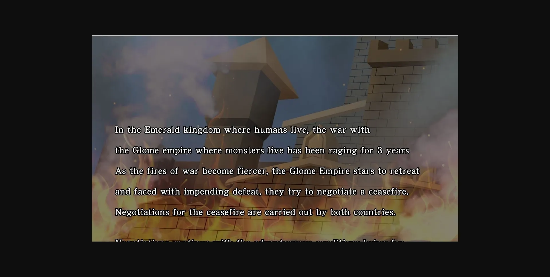 As the fires of war become fiercer, the Glome Empire starts to retreat and is faced with impending defeat, so they try to negotiate a ceasefire.