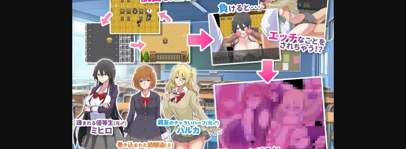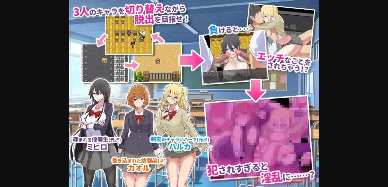 2DCG, Female protagonist, Multiple endings, Group sex, School setting, Transformation, Oral sex, Vaginal sex, Creampie, Teasing, Groping, Big tits, Big ass, Censored, Japanese game