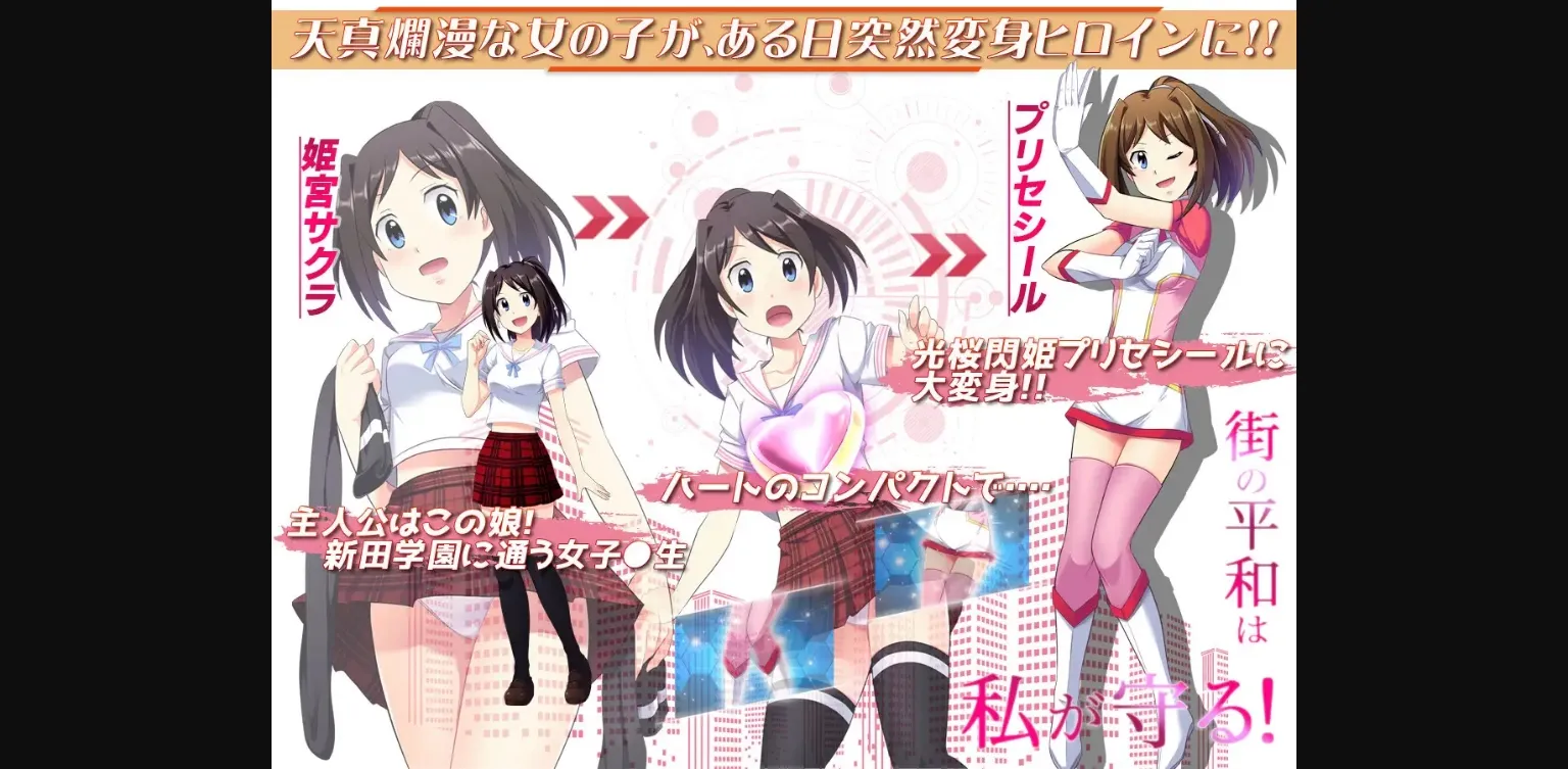 The year is 202x, and something is up in Kamijiki City. Strange monsters are appearing, and it’s all up to Sakura Himemiya and her hidden heroine identity "Brilliant Blossom Princess Prececile" to protect the city! However… The monster commander, and an evil cult and their devious leader have other plans. Can Sakura solve the mystery of what’s going on, and beat the baddies!? What fate awaits her? You’ll have to find that part out yourself…