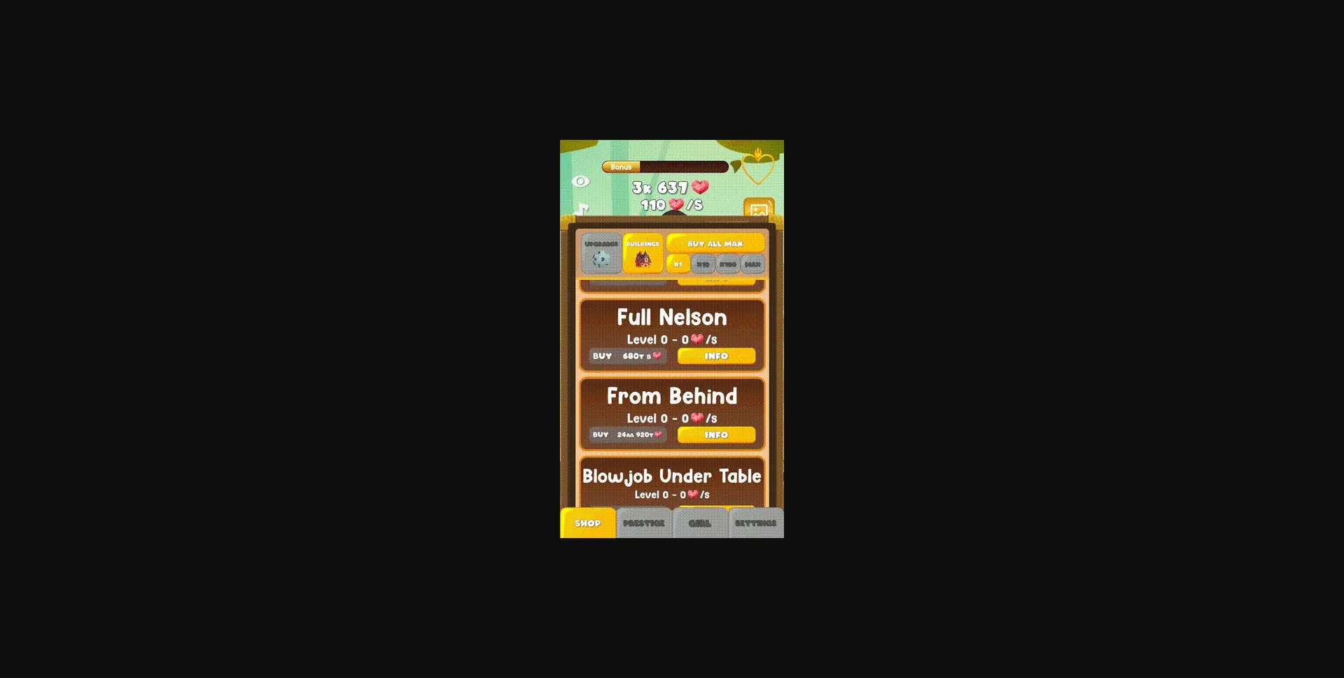 Click and collect new scenes, accumulate prestige points and new characters will want to join your roster.