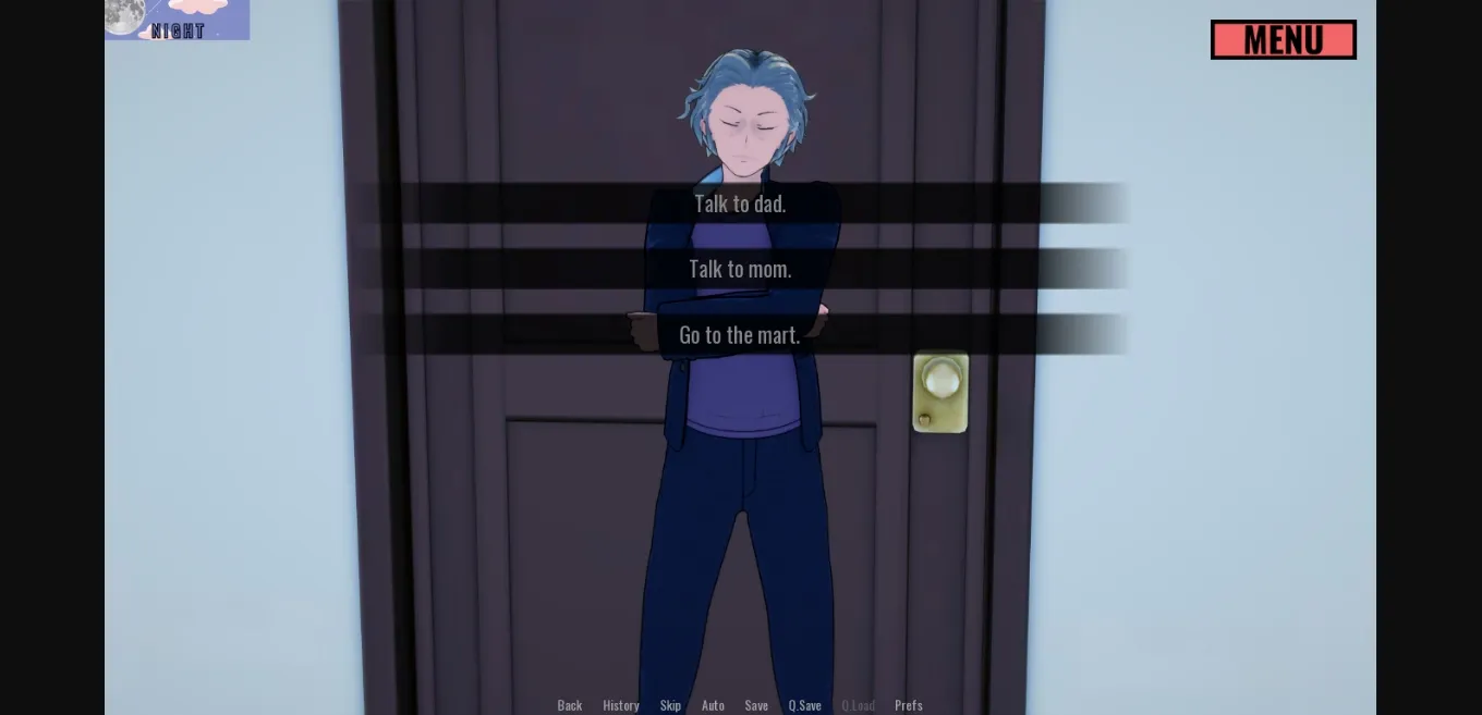 I really thought about the elements of the game, and I made the decision to change the way the history progresses. No longer will the player rely fully on the movement system to move on, the history now will move as a standard Visual Novel, only at game night will the player be able to choose where to go, this way I can make renders and write more nicely and still give the player some choices.