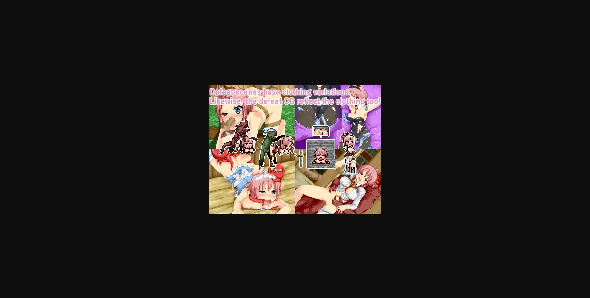 Animated, Pixel, Sex, Oral Sex, Vaginal Sex, Side-scroller, Rape, Comedy, Lesbian, Bestiality, 2DCG, 2D Game, Female Protagonist