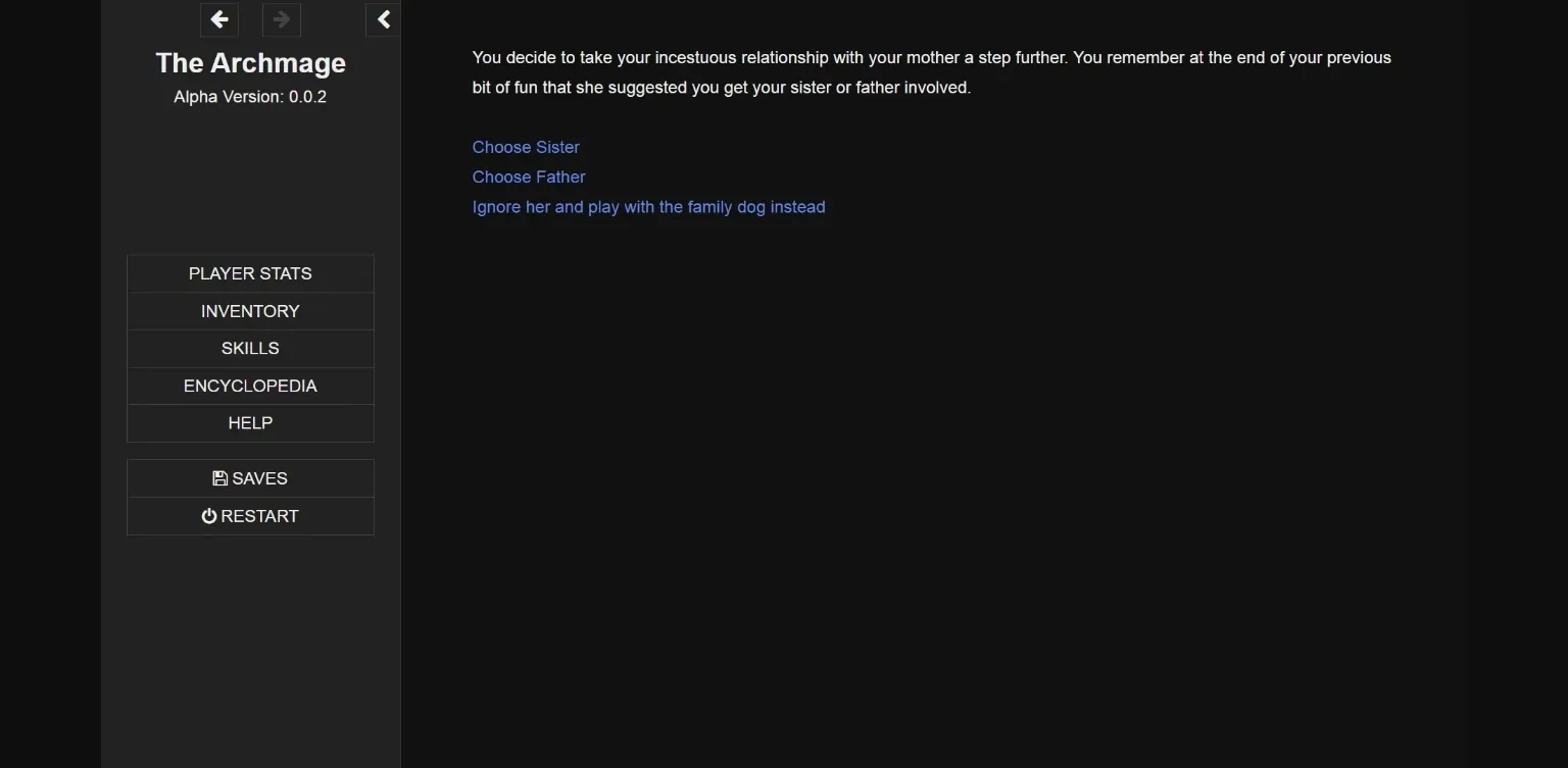 Adventure, Anal Sex, Bestiality, Character Creation, Cheating, Corruption, Creampie, Fantasy, Female Protagonist, Futa/Trans, Futa/Trans Protagonist, Incest, Lesbian, Male Protagonist, MILF, Mind Control, Necrophilia, Rape, Religion, Text Based, Transformation, Urination,