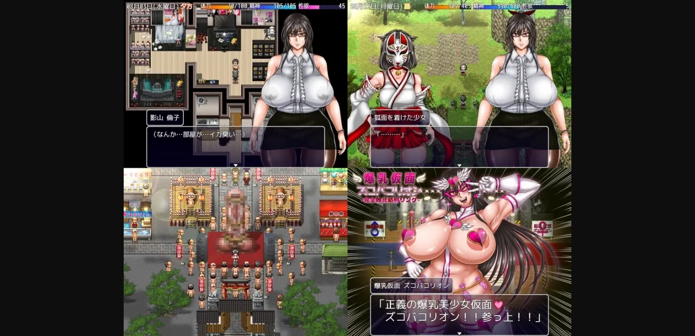 2d game, 2dcg, Adventure, Ahegao, Anal sex, Big tits, Big ass, Bukkake, Blackmail, Censored, Cosplay, Creampie, Female protagonist, Groping, Group sex, Handjob, Horror, Japanese game, Male domination, Masturbation, Milf, Monster, Multiple endings, Multiple penetration, Oral sex, Paranormal, Prostitution, Rape, Religion, Romance, Sandbox, School setting, Sex toys, Sexual harassment, Spanking, Stripping, Tentacles, Titfuck, Vaginal sex