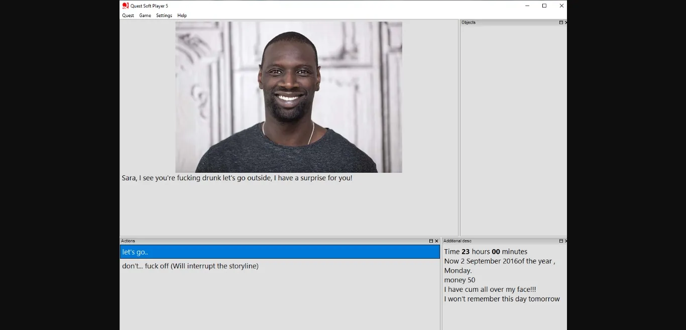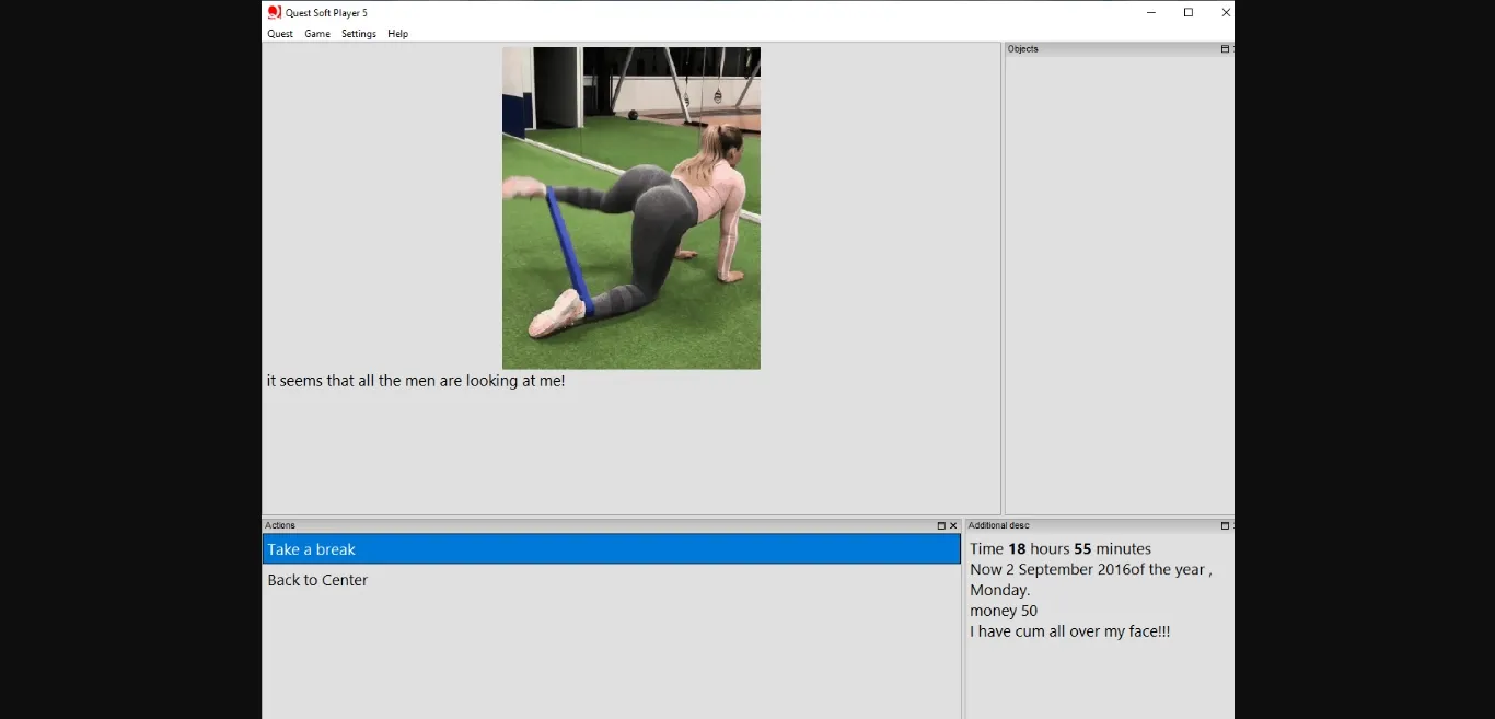 You have to play as Sarah, this is a woman of 35 years old, she is very beautiful and almost everyone you meet wants to fuck her!