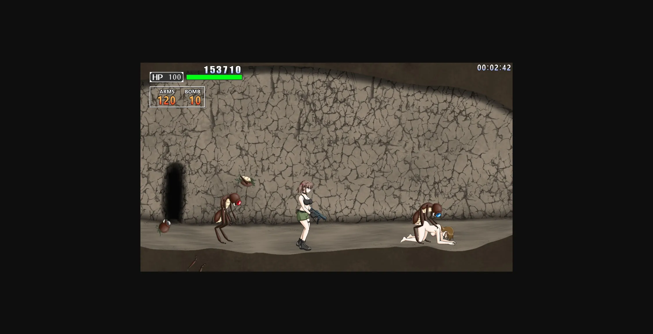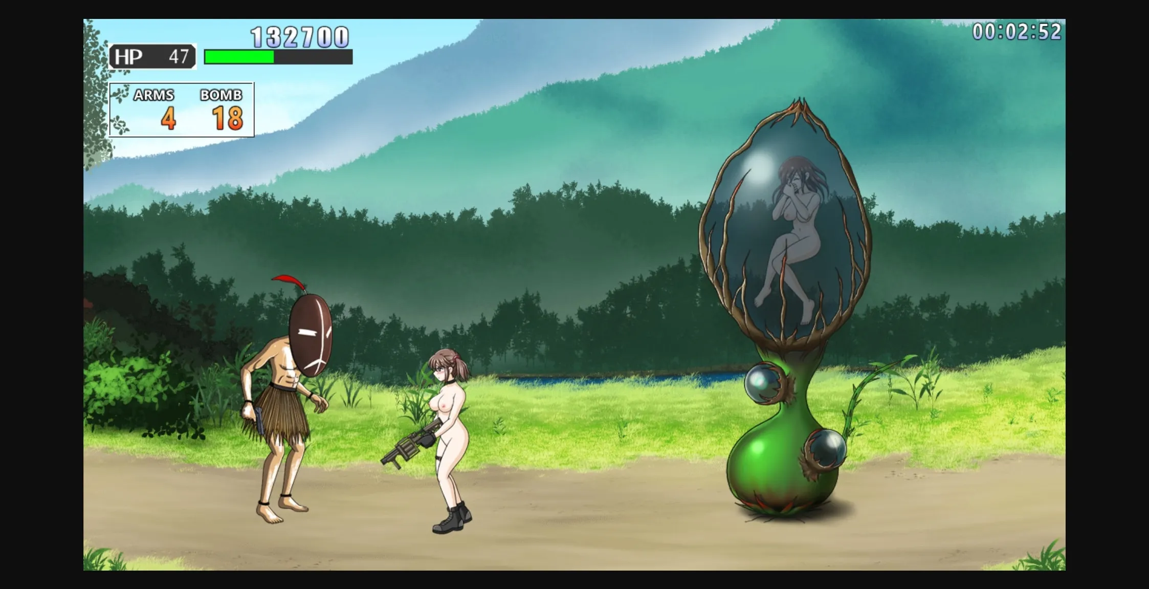If your health drops below half, you will enter the ‘nude state’. Be careful! In this state, enemies will try to violate her if they get too close!