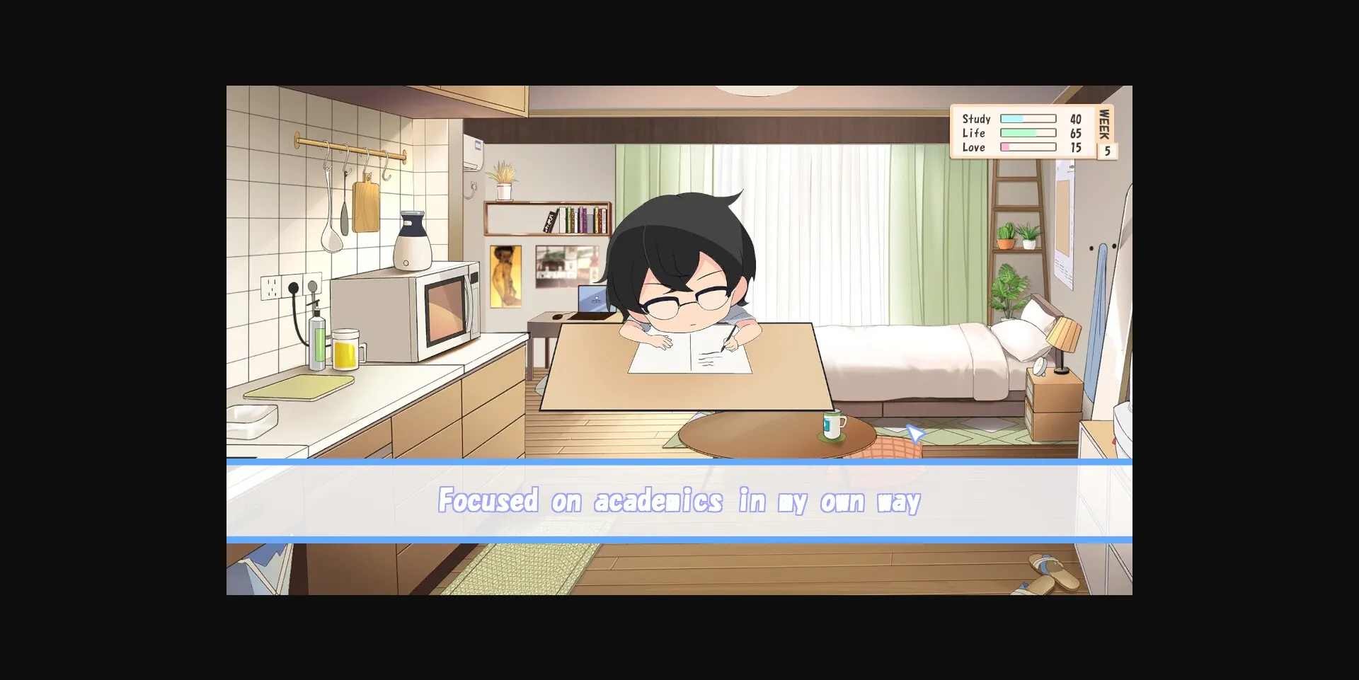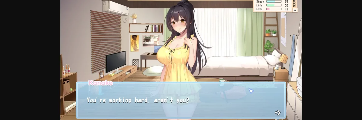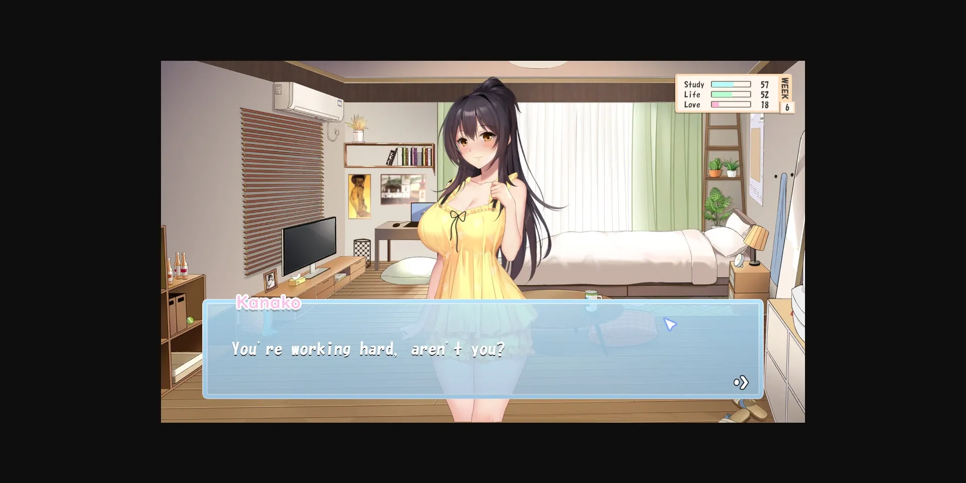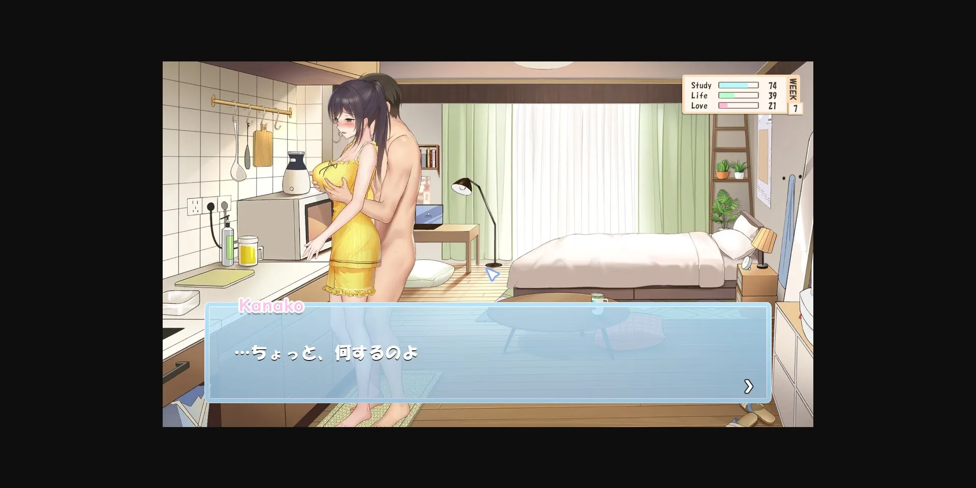 The protagonist begins cohabiting with his girlfriend, Kanako Tsukishima, whom he started dating in college. Compared to their sweet romance, living together presents many practical challenges. Players must plan their daily lives, balancing academics, lifestyle, and romance.