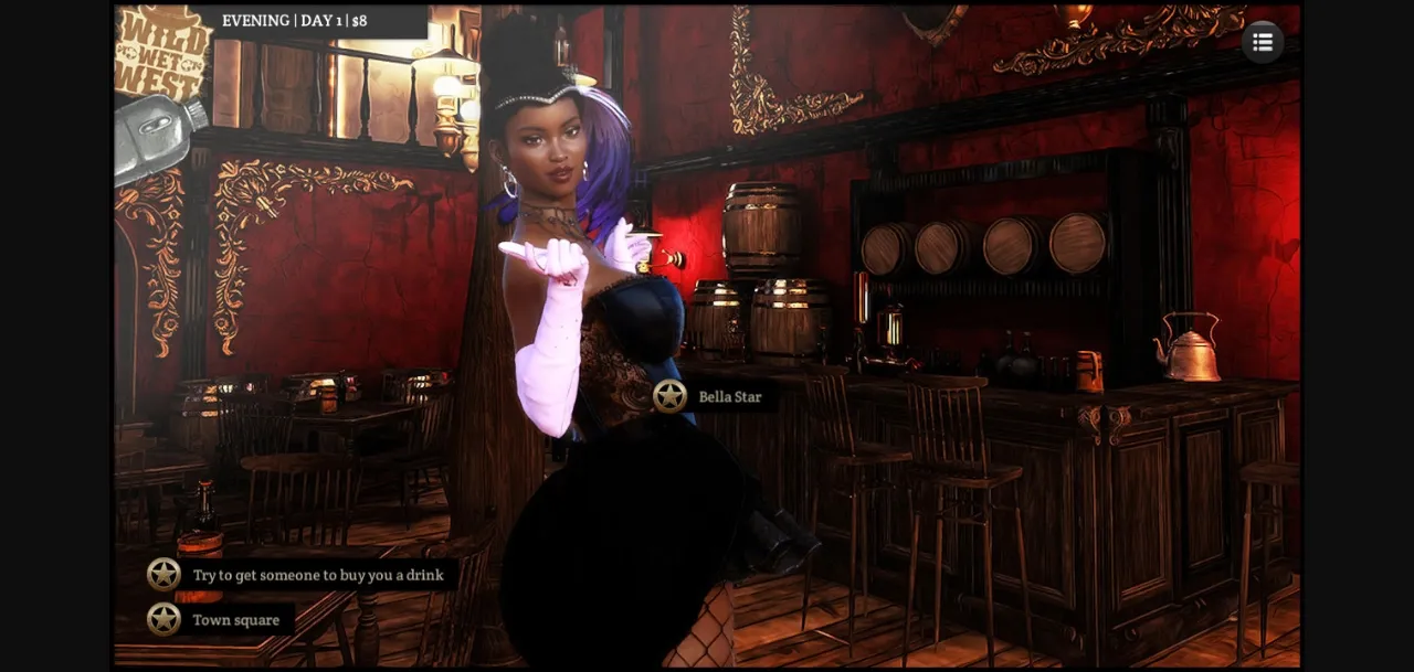 simplified dating sim with 3 charismatic girls to follow: local sheriff, dancer