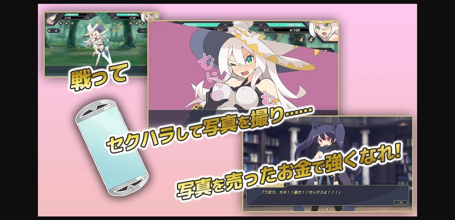 – Take lewd photos of her, then sell them for money, so you can buy power ups!