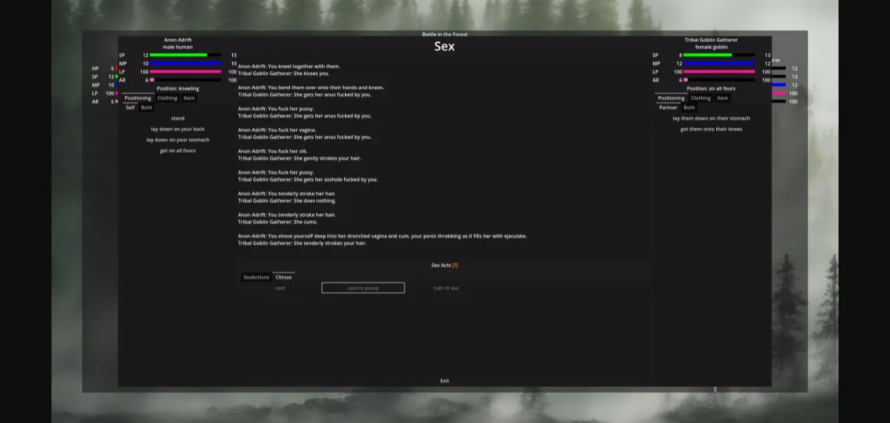 - Sex Scene no longer has its own background that is set based off of the current region. Instead the Combat scene UI hides itself, allowing us to use the combat scene background for it.