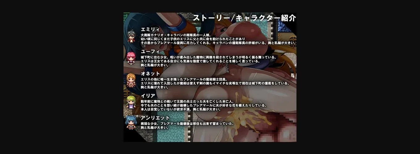 There is only one battle against the Lasso boss. This is a game where you explore the royal castle where the curse is sealed, collect materials for human body modification items, and watch erotic events as you learn hypnosis, memory manipulation, and fascination spells.