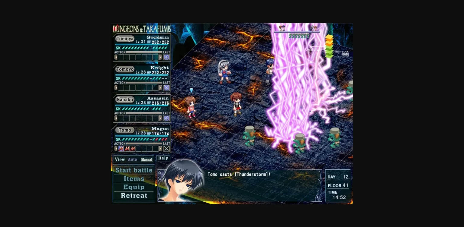 Featuring the characters of the main story in a fantasy setting, "Dungeon & Takafumis" is a fully-featured, comedic strategy RPG that will add hours to your experience