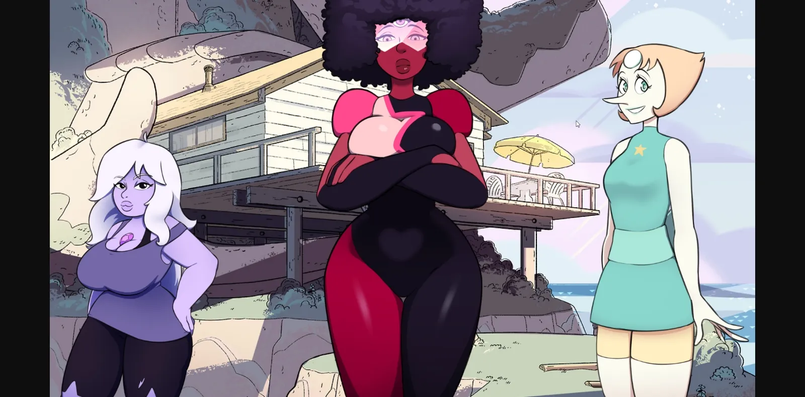 You play as a close a friend of the Crystal Gems, come home from a long trip away. Erotic scenes ensue.