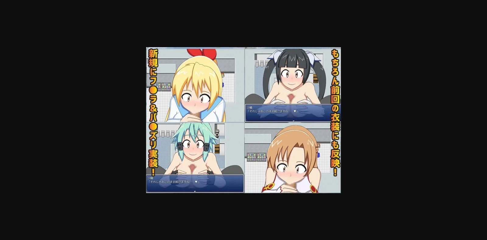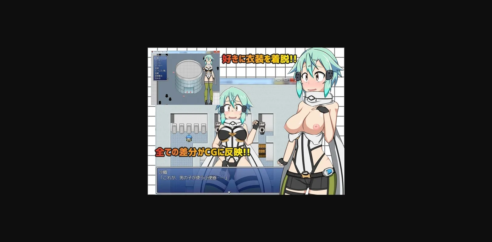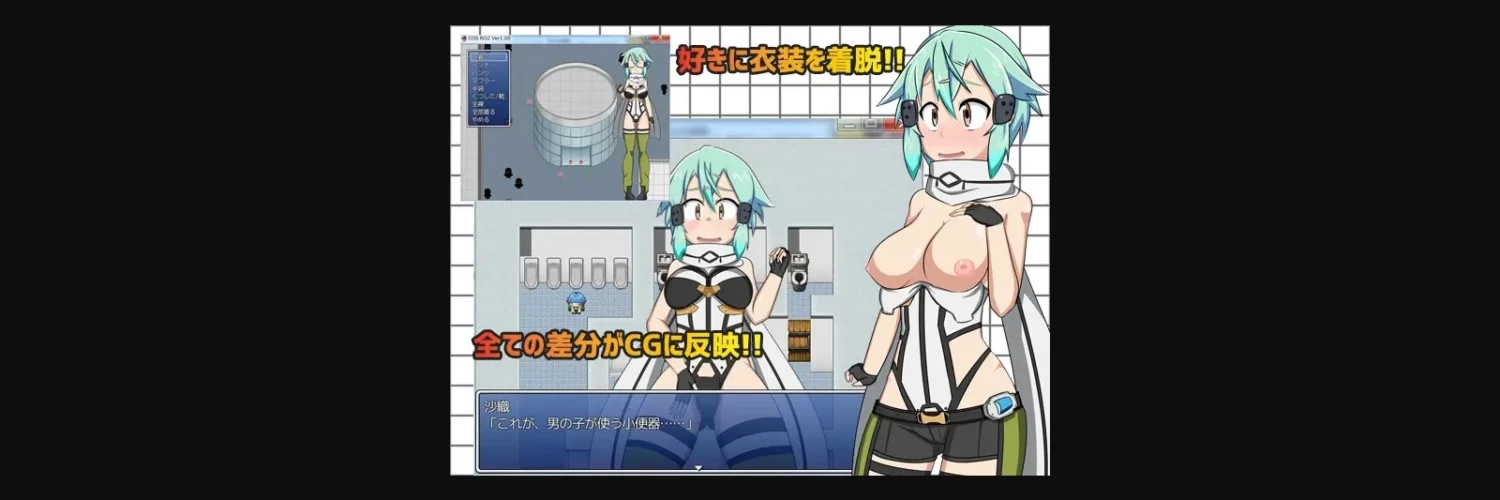 2DCG, 2D game, Female protagonist, Japanese game, Censored, Vaginal sex, Oral sex, Group sex, Cosplay, Exhibitionism, Urination
