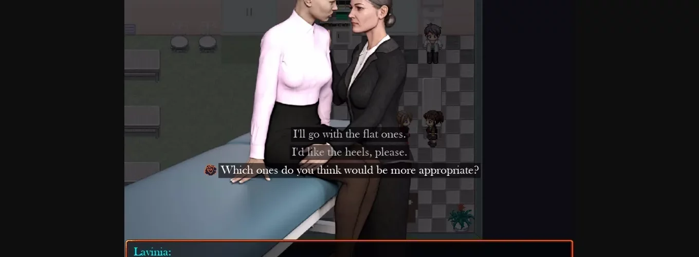 Our main character Danielle wakes up in a strange room dressed only in a flimsy hospital gown. She doesn’t know how she got there, where she is or how to get out of there. Strange people she meets underway don’t seem very inclined to shed light on the situation. At the moment, Chasm of Sin doesn’t have very much content but we hope to change that in the future as we develop our game engine and characters.