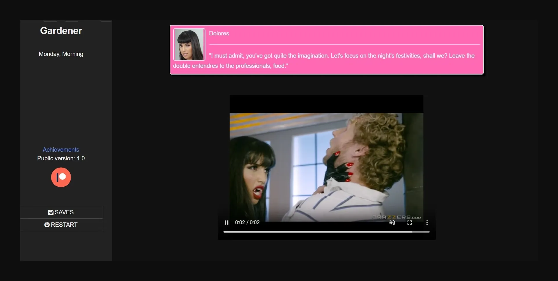 Gardener is a game about exploring and adventures of young guy. There are two main characters with highly interactive sex scenes: Mercedes Carrera and Abella Danger. There are two paths: Evil and Kind. You may rape or seduce: it’s up to you.