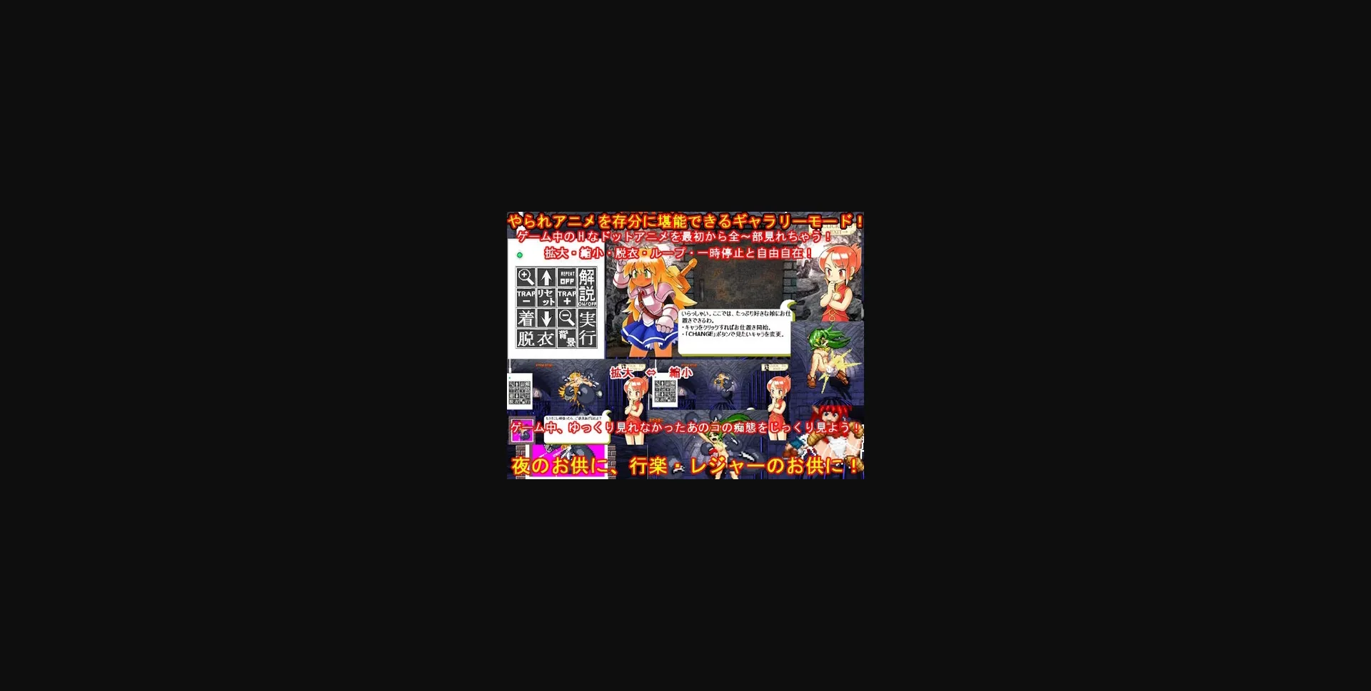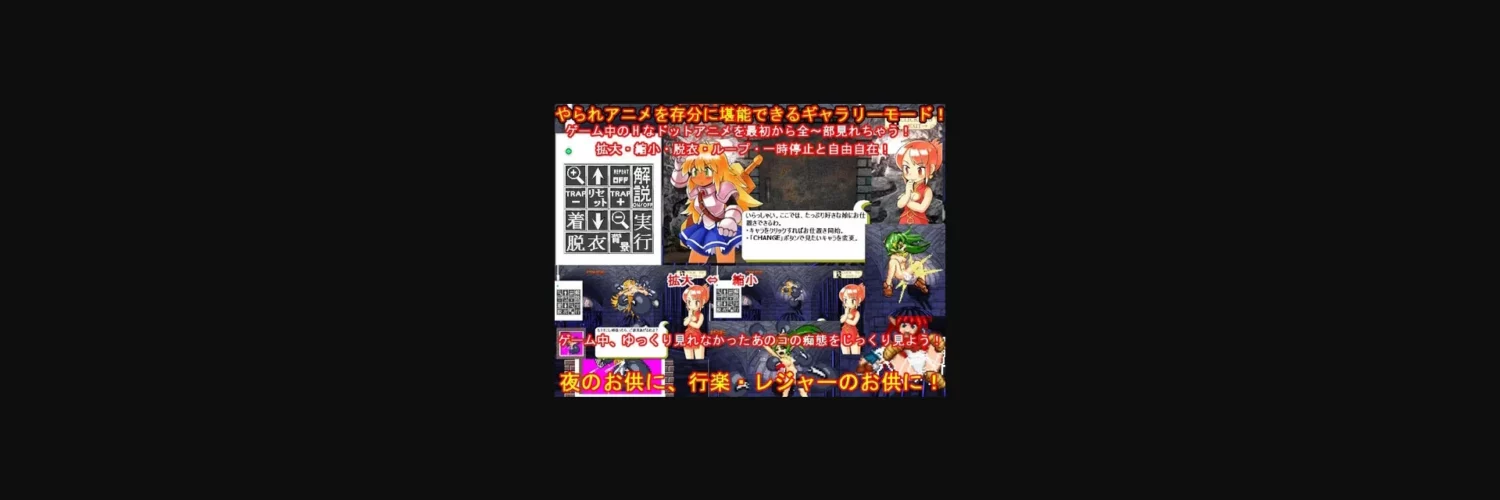 2DCG, 2D game, Female protagonist, Rape, Combat, Graphic violence, Platformer, Lolicon, Oral sex, Action, Monsters, Collar/Chain/Hamper, Foreign Object, Warrior, Internal Cumshot, Coercion/Compulsion, Vaginal sex, Gore, Ryona, Death