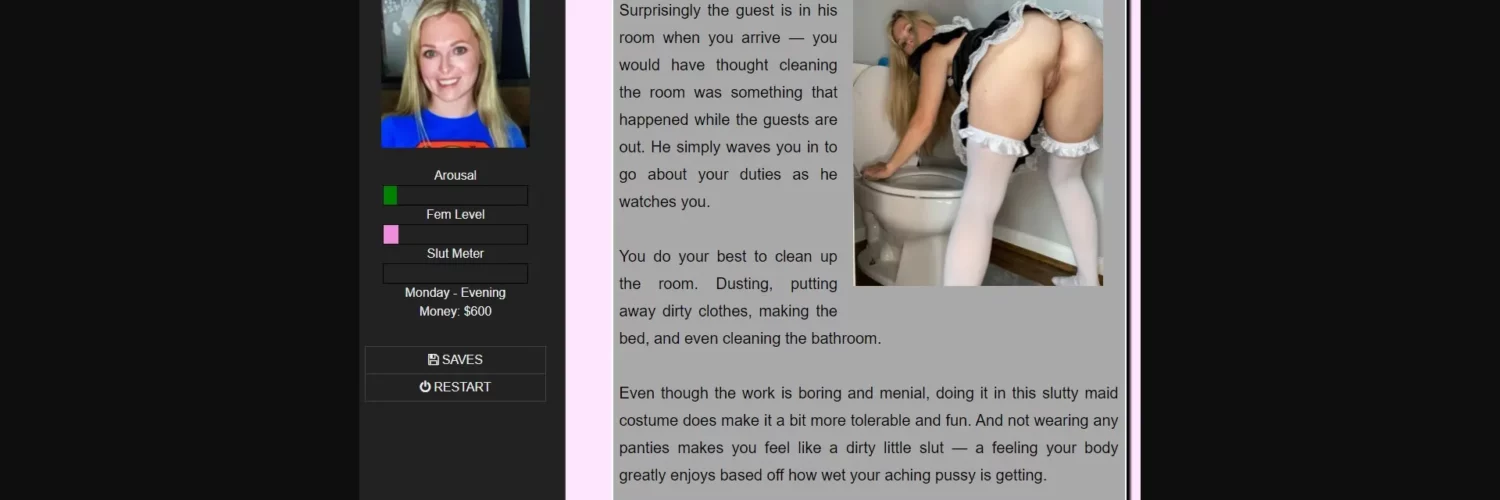 I’ve set up a patreon page for those who would like to contribute. I’m working with a live model for the female MC scenes. I don’t have enough money to buy content for the full 7 days, so I will likely be ending the game at 4 or 5 days. If donations pick up and I can buy more content I’ll revisit this.