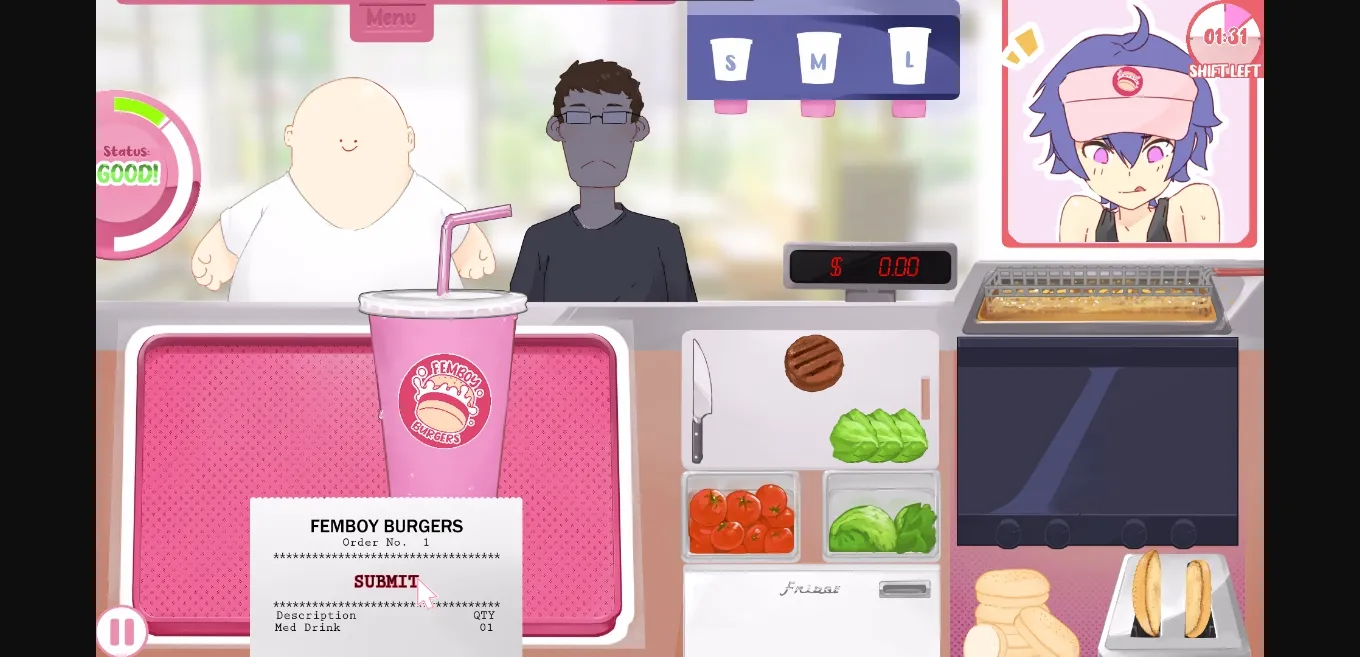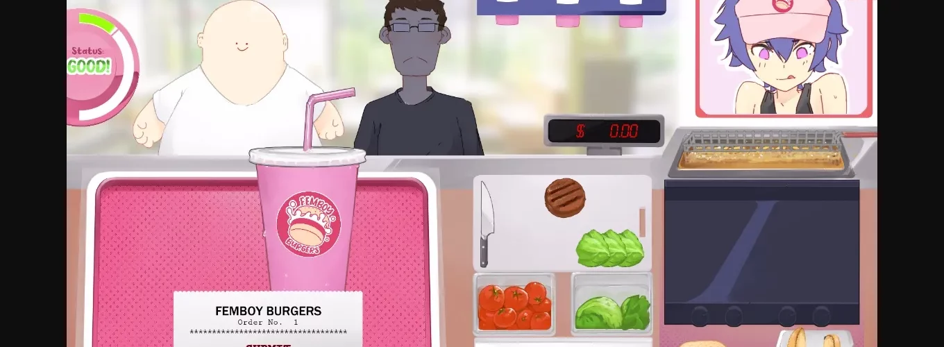 Start a new job as a femboy serving burgers -among other things! :y