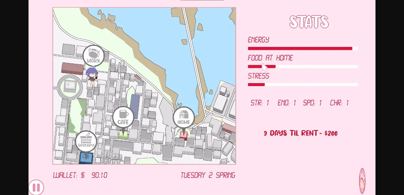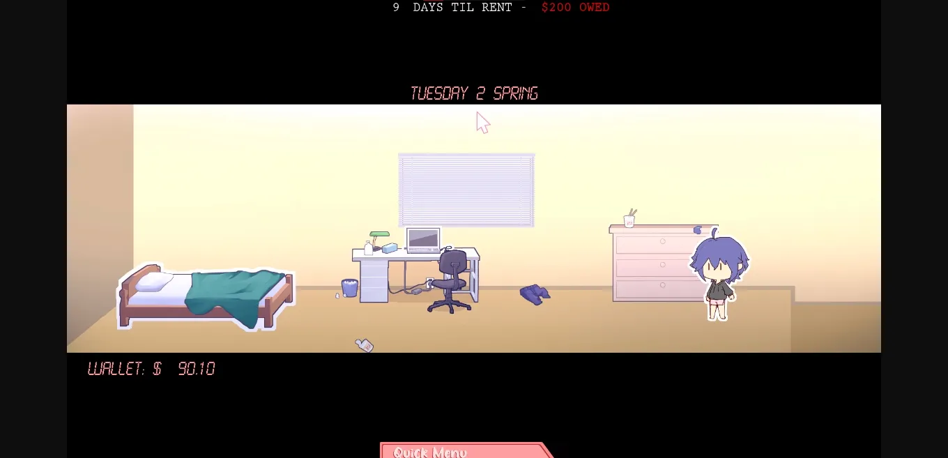 – Leveling up system per rent payment cycle which will affect your ability to work and change how dialog interactions will play out