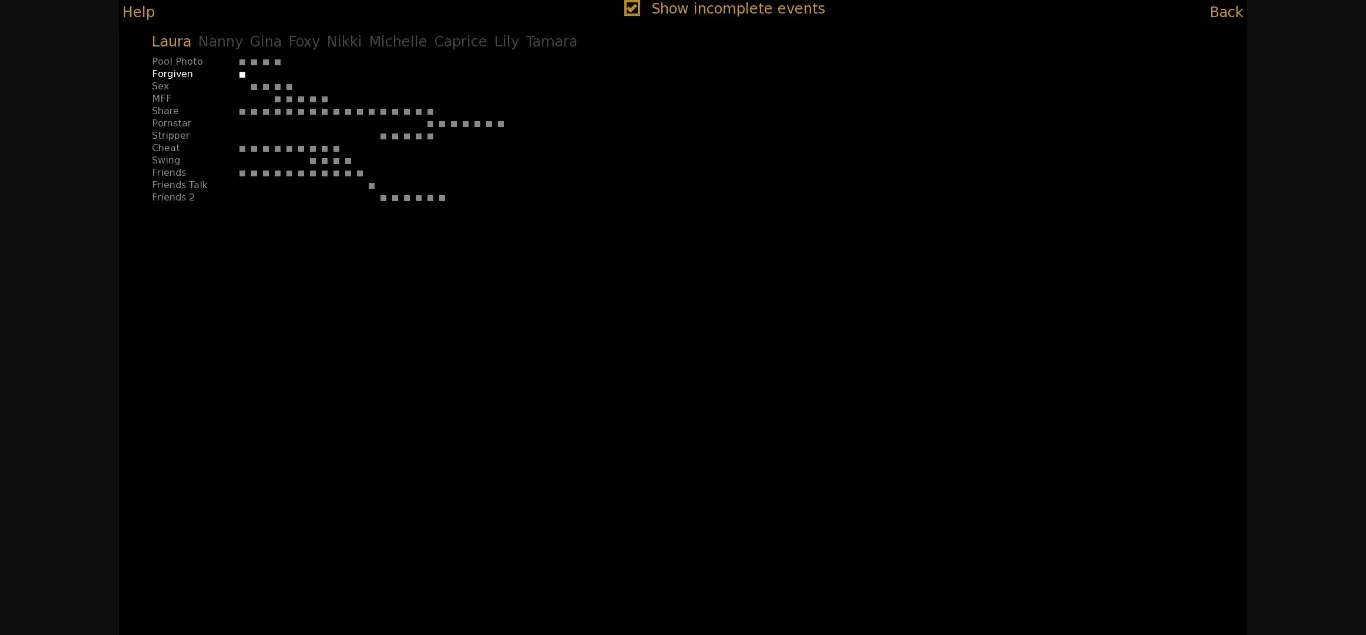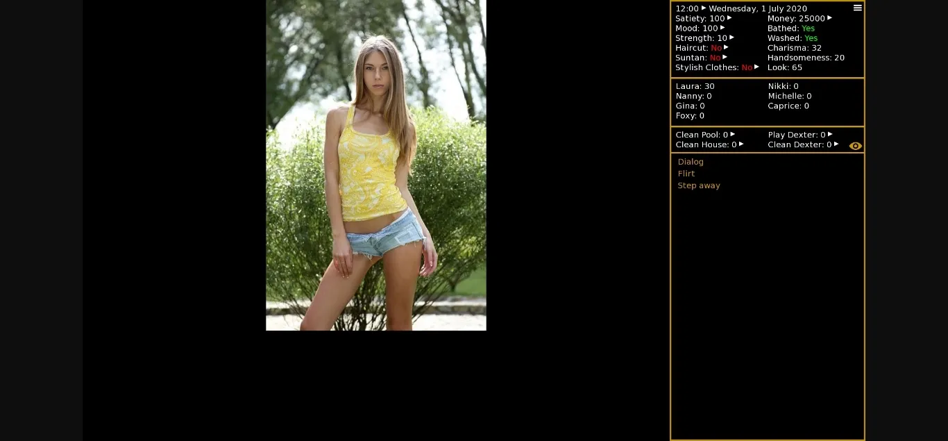Bug fixes – fixed ginaSeduce3 trigger, gift giving bug, sleeping Nanny image, mood cheat bug, and foxyModel thread images. Activated relationship cheating at a lower threshold (now available once relationship >= 200).