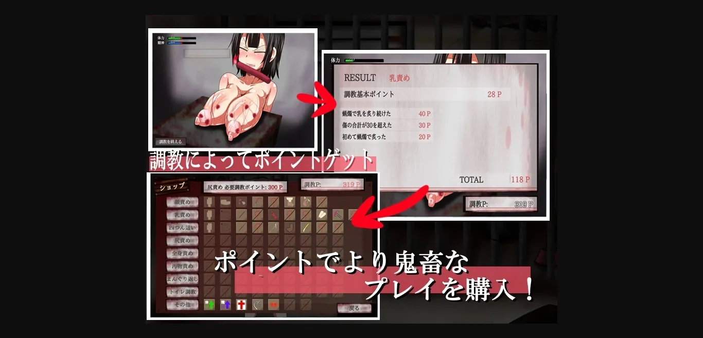 Japanese Game, Censored, Big Tits, Female Protagonist, Voiced, Graphic Violence, Slave, Scat, Spanking, Watersports, Coprophagia, Puking
