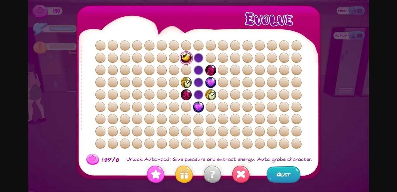 Pleasuring a character in a locker will generate Energy and Lust points. The Energy is used to grow new tentacles in lockers while the Lust Points can be used to upgrade Tentikun or even unlock new types of Tentacles.