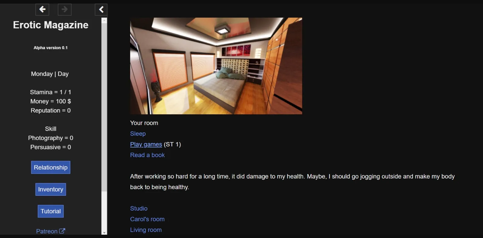 First of all, I would like to deeply apologize for every supporter and follower from my previous due to my hiatus. During that time, I work hard and try to save up money to buy new computer so that I can use Daz3d as rendering also practicing coding. Now, I come back with my new game, Erotic Magazine, and I plan to develop it in larger game. Feel free to give a feedback, I really need it!.