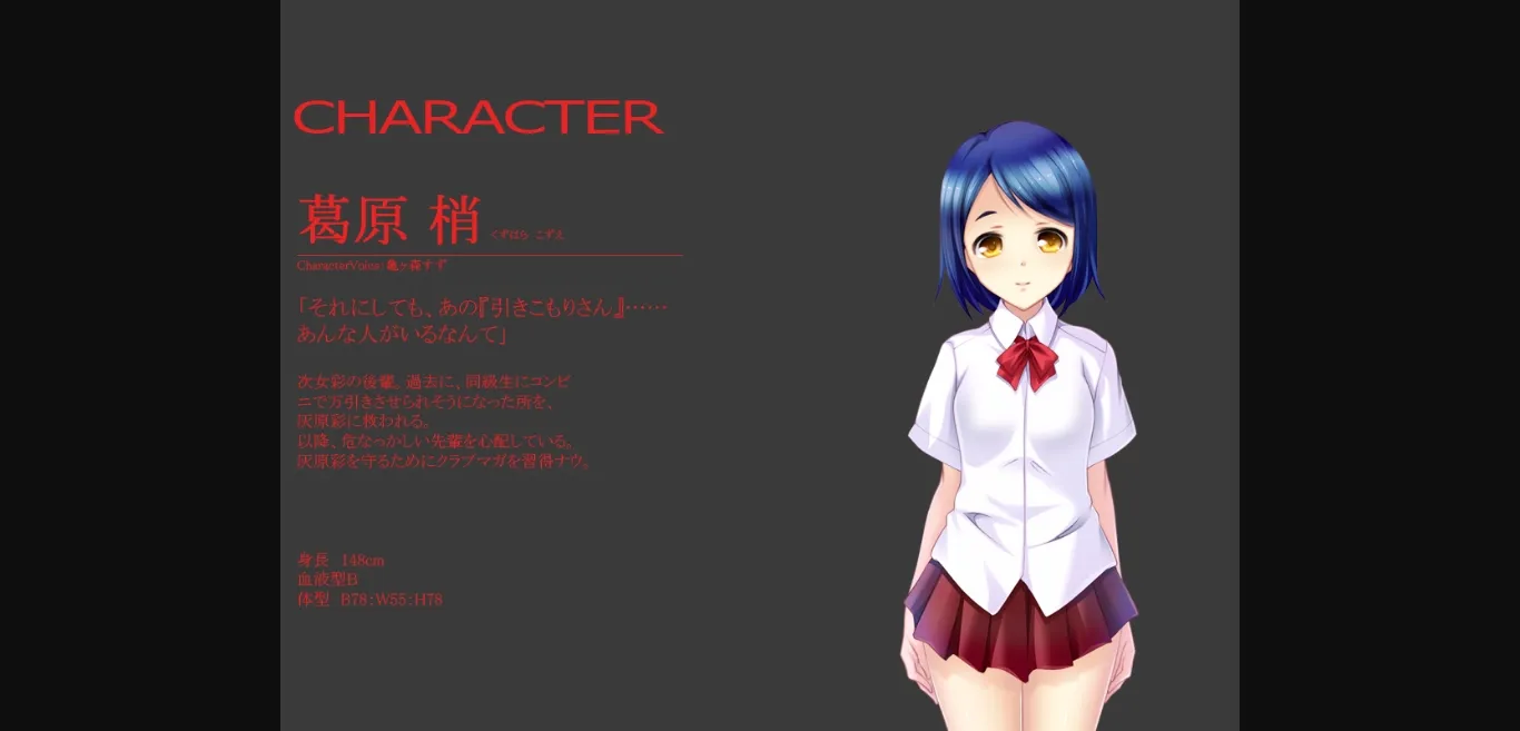She is an active female student, an introverted and quiet literary girl.