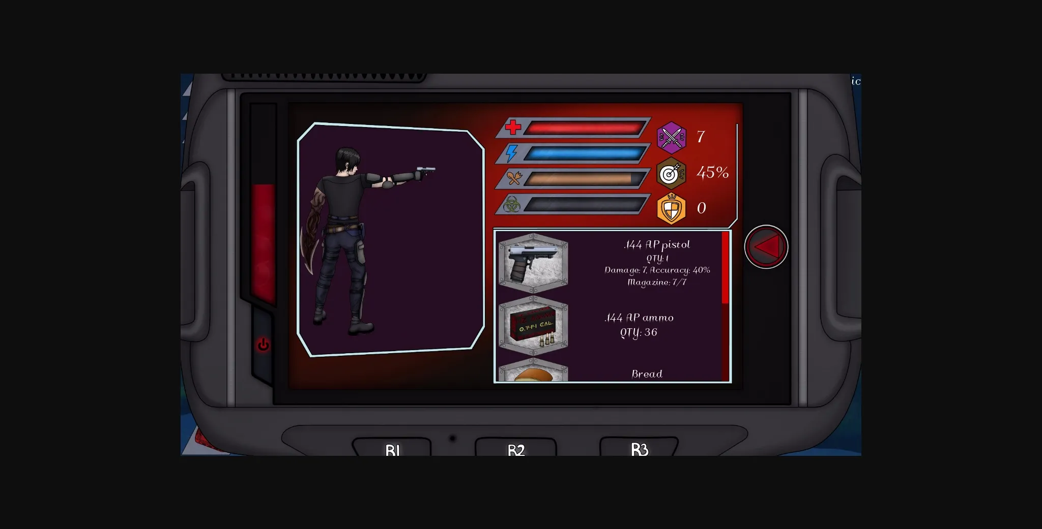 * Added window with information about the main character