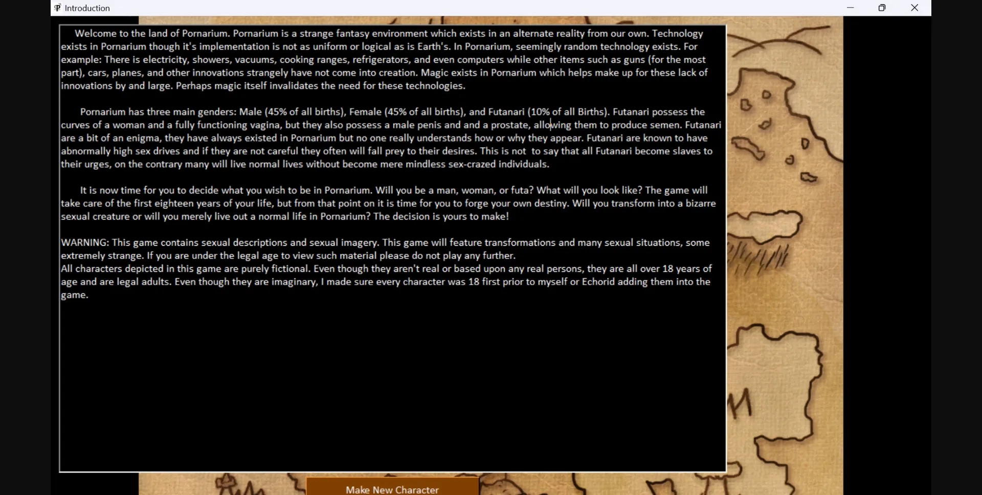 A Text based RPG/SIM Adventure Game, Featuring Erotic Transformations, Futanari, Explicit Sex, and other Graphic Content.