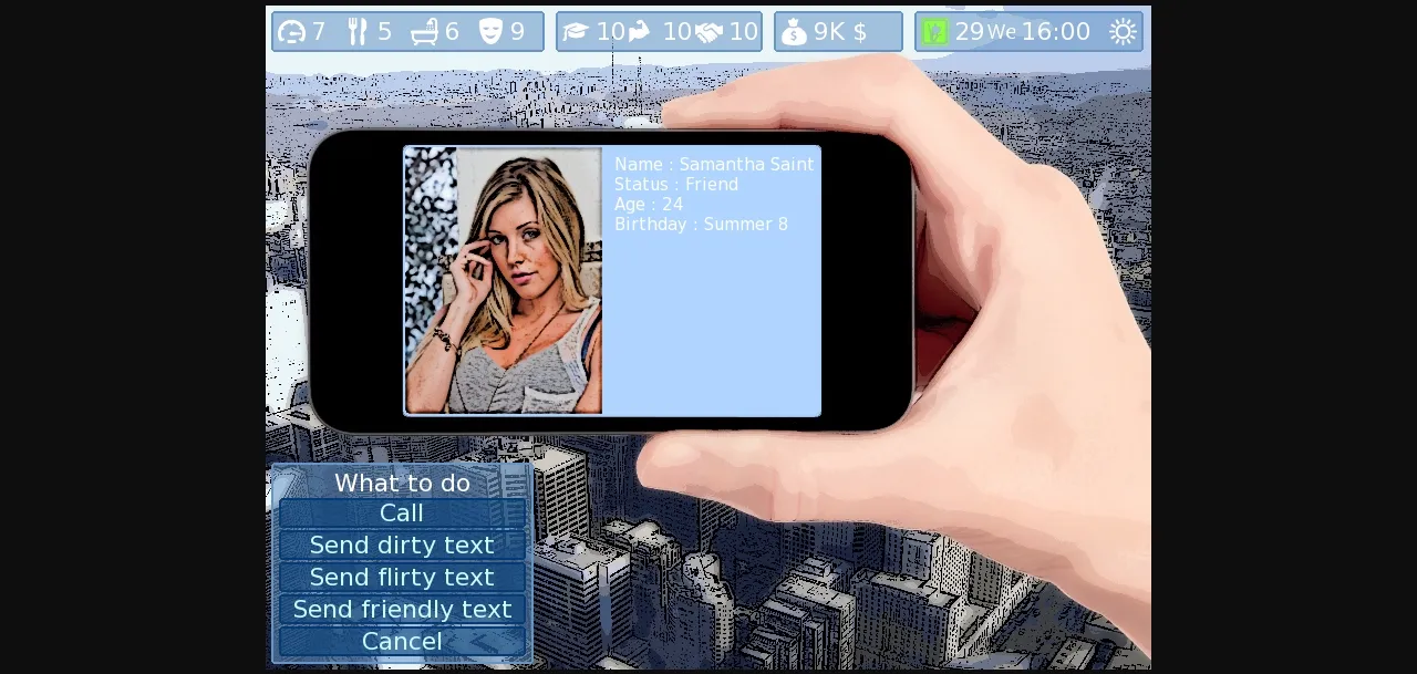 – Added a girlfriend system, doesn’t do much yet except having girlfriends and breaking up with them