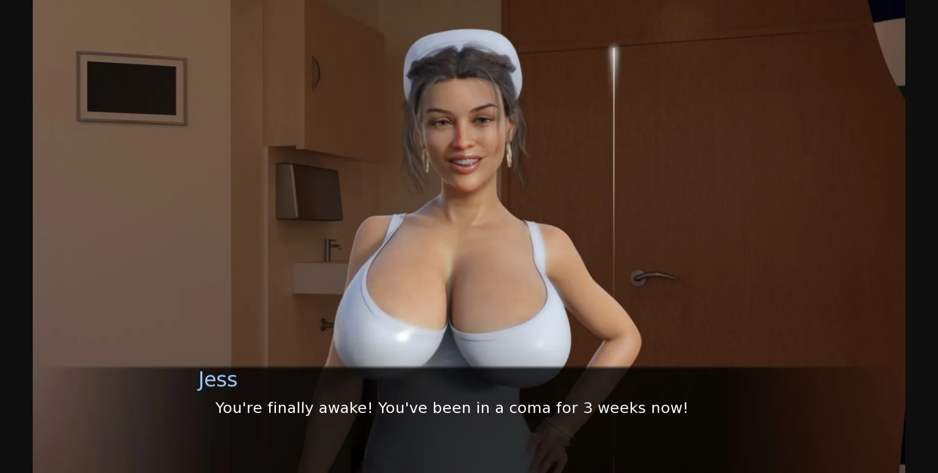 After a short stint in a coma you, our degenerate main character, wake up in a hospital run by some big titty nurses.