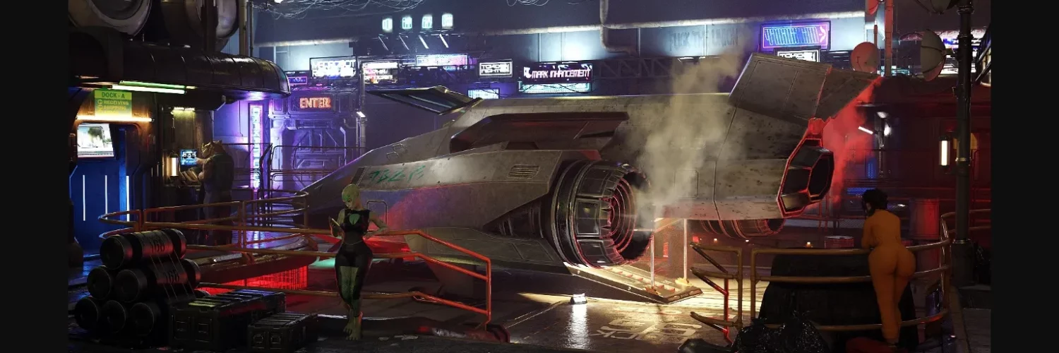 The setting’s main inspirations are cult classics like Fifth Element, Farscape, Space Truckers, Red Dwarf, Battletech, Syd Mead’s paintings, and other similar older sci-fi works. I am hoping to emulate that seedy, B-movie, lived-in atmosphere. Dirty and functional environments but still immersive and fun enough to live in. You can check the screenshots above and let me know if this goal of mine succeeded or not.