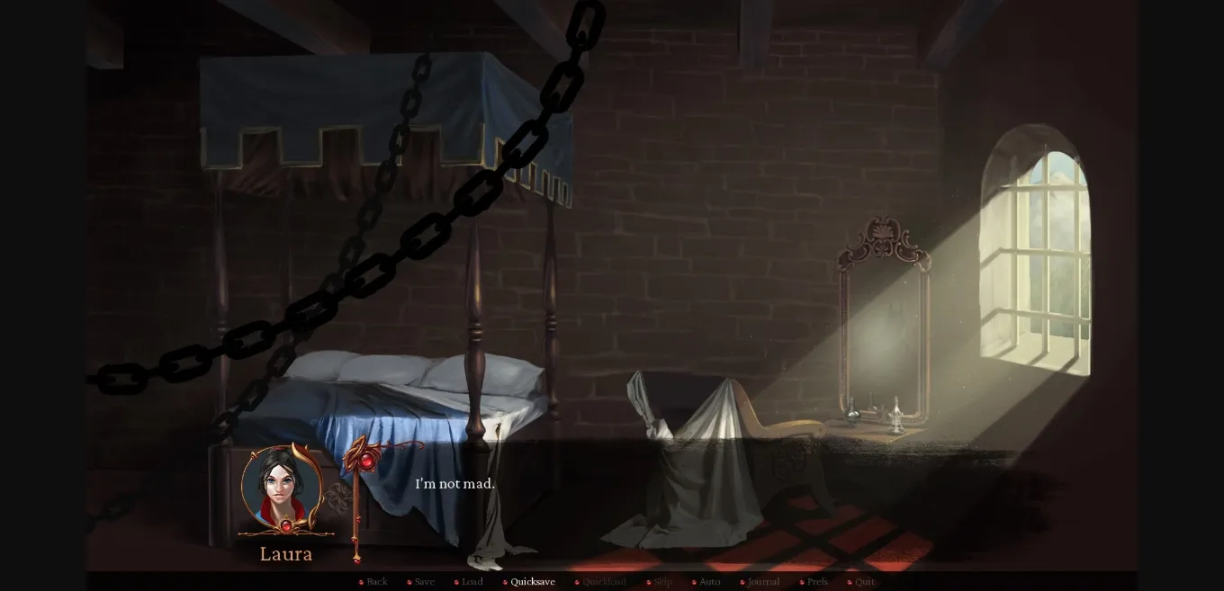 The Knight of the Crimson Tower is a kinetic visual novel about the adventures of Laura,