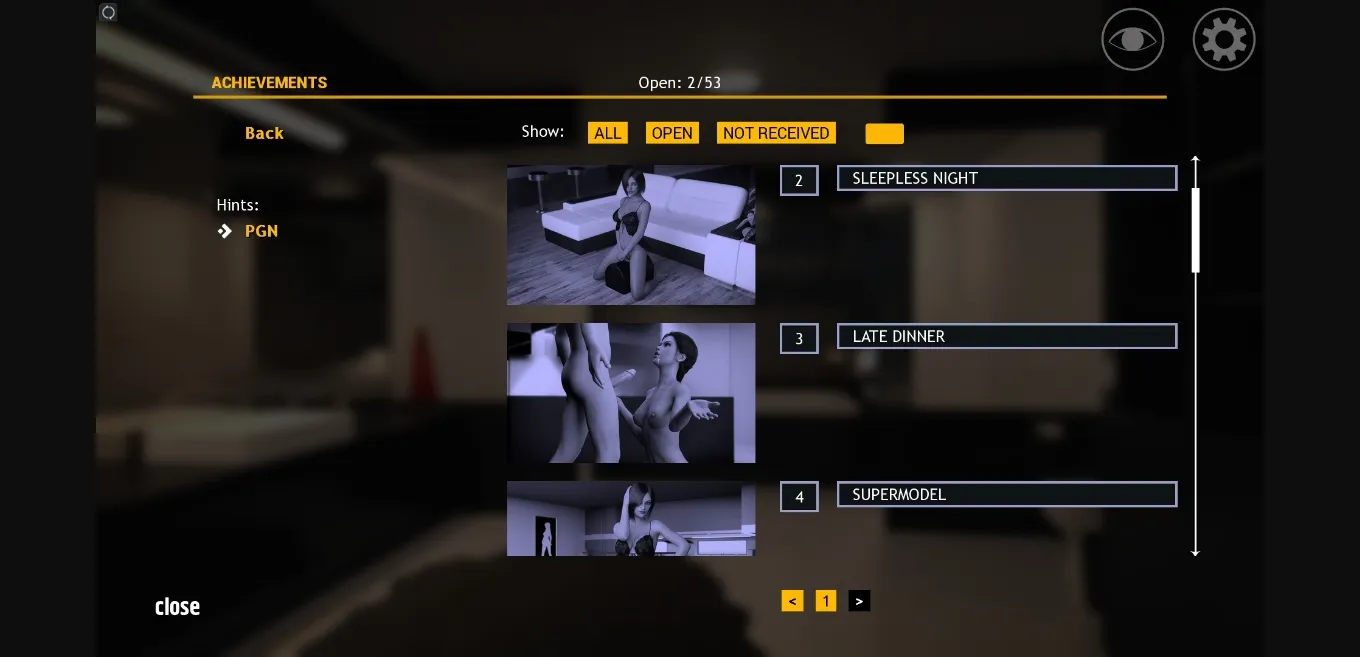 - Achievements. If you have a detailed walkthrough selected, a text will appear when you try to play a scene stating why the scene cannot be played.